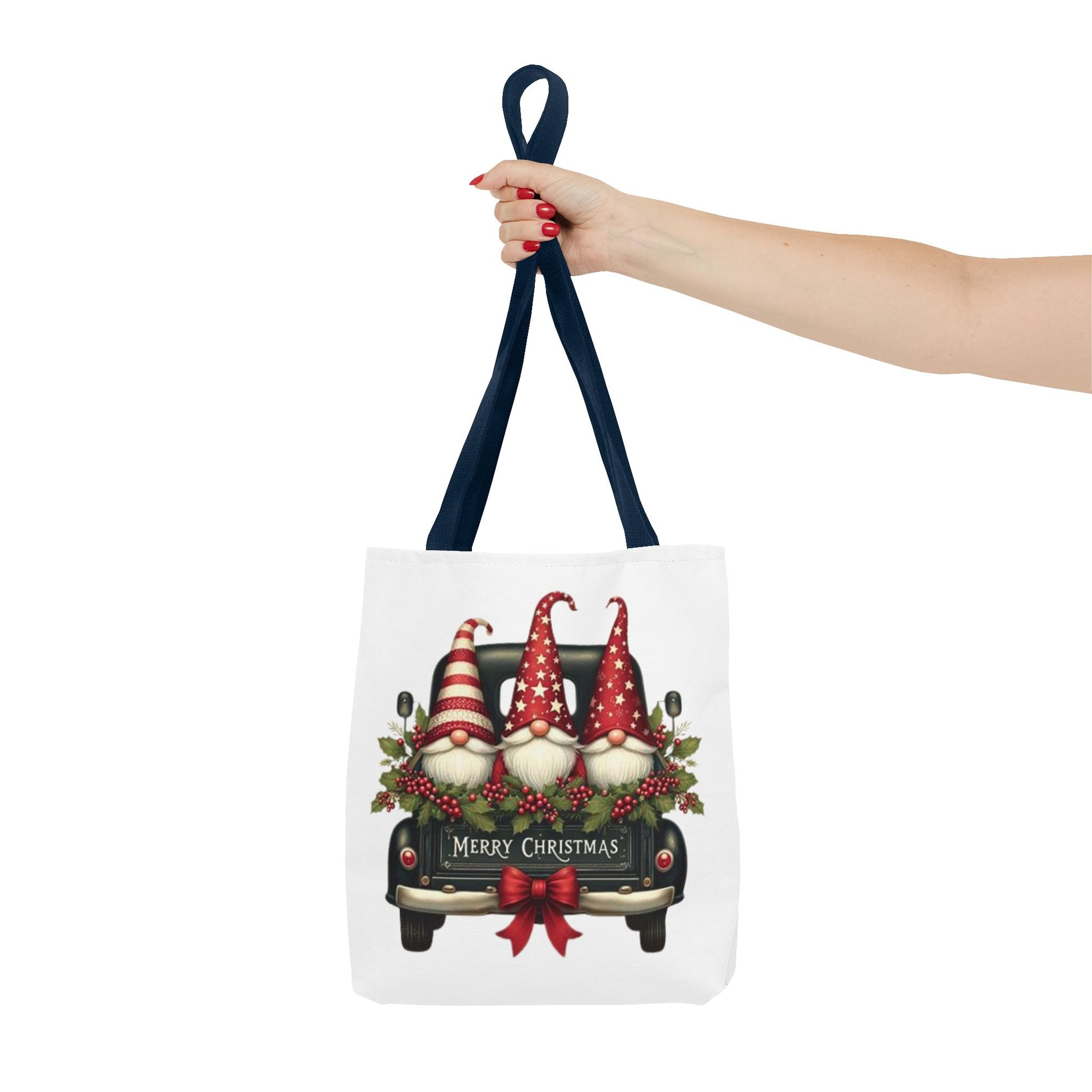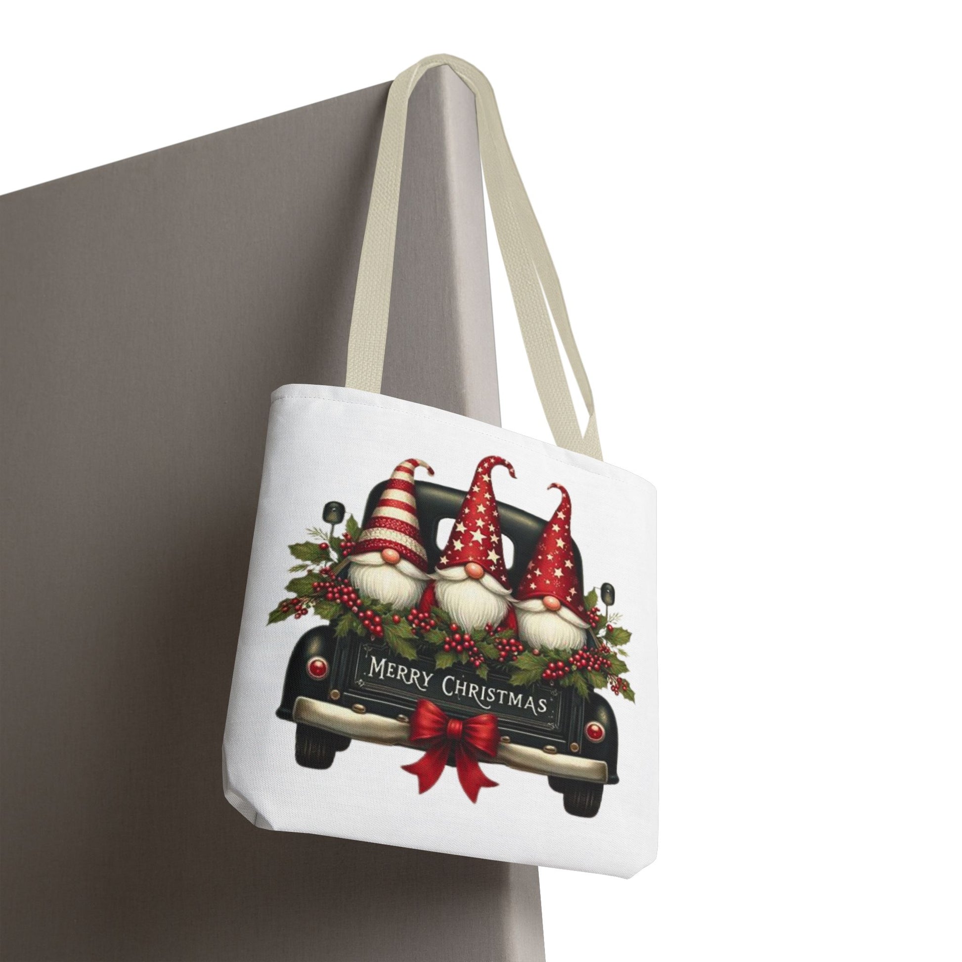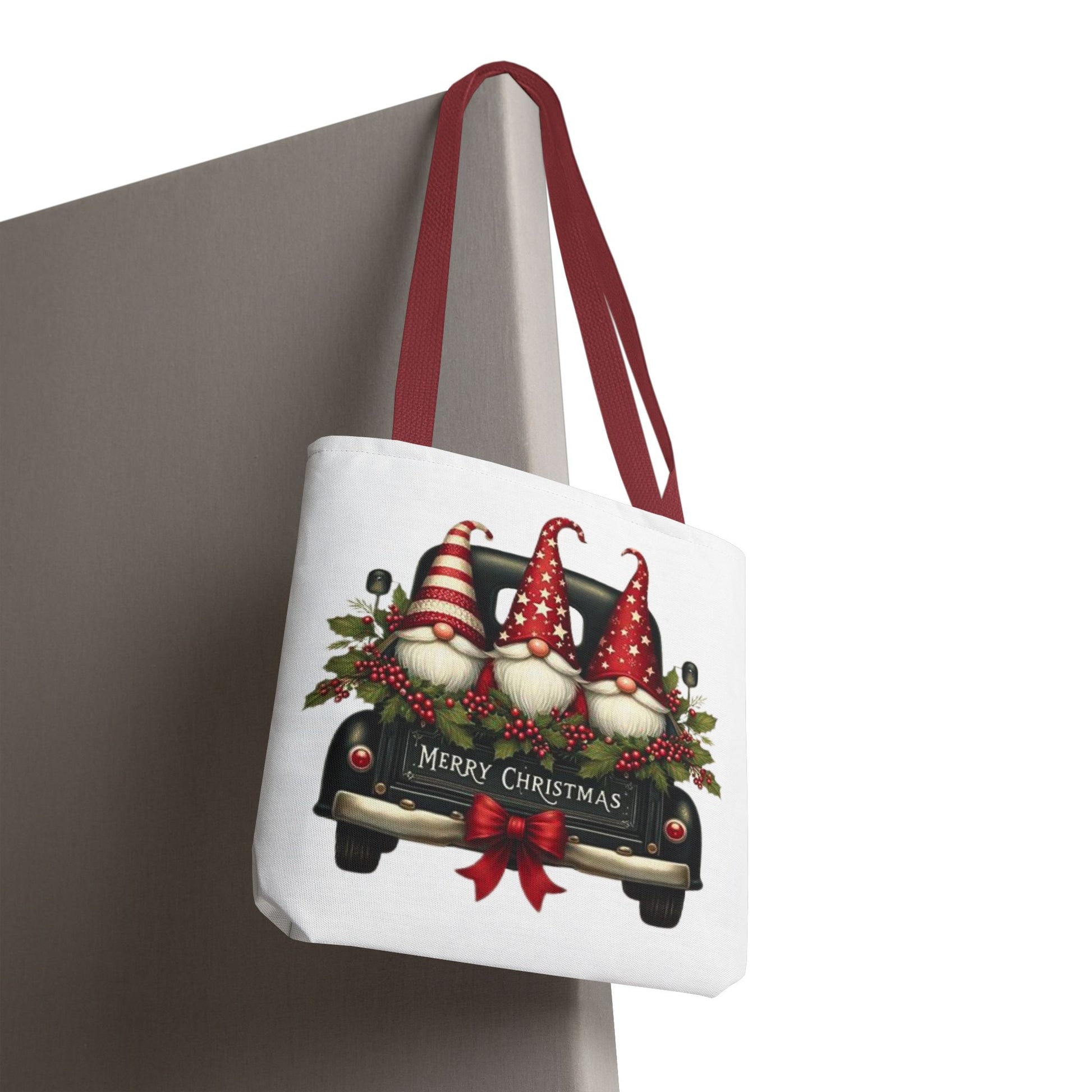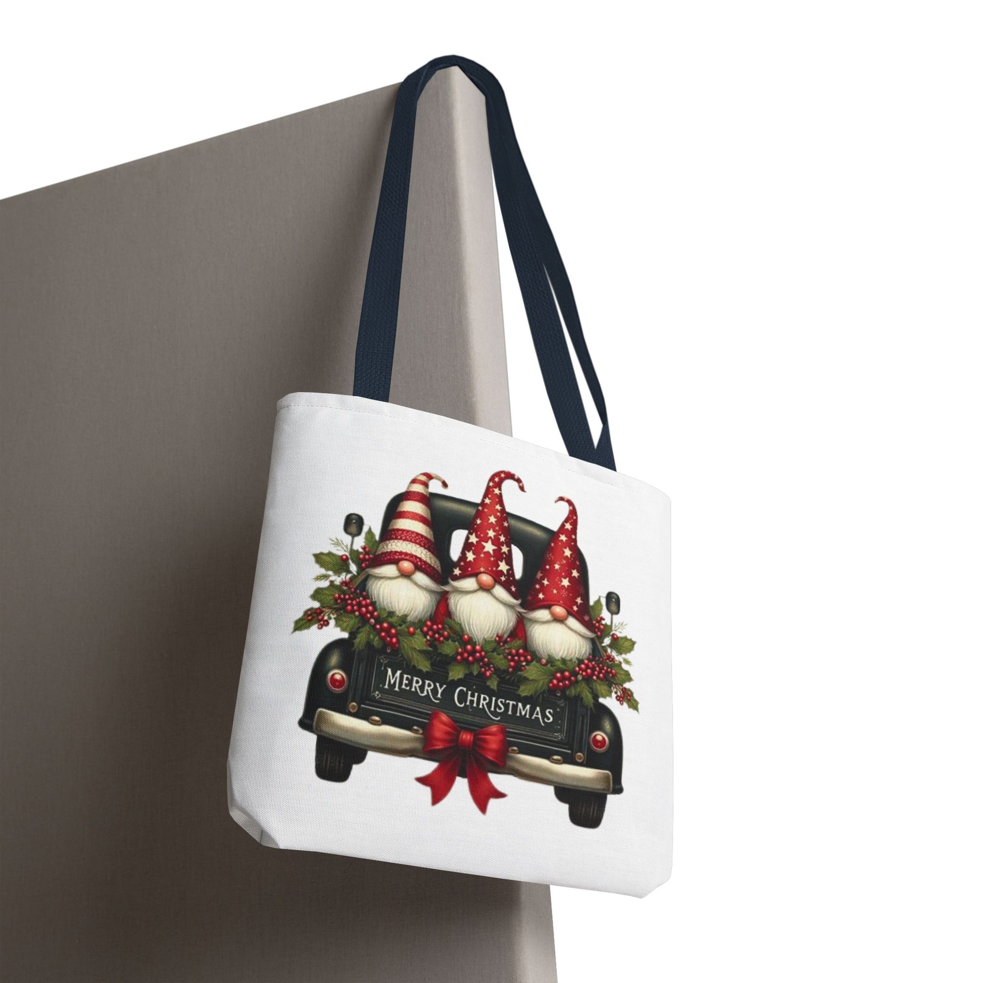 3 Christmas Gnomes in Truck Tote Bag, Fun Holiday Gift