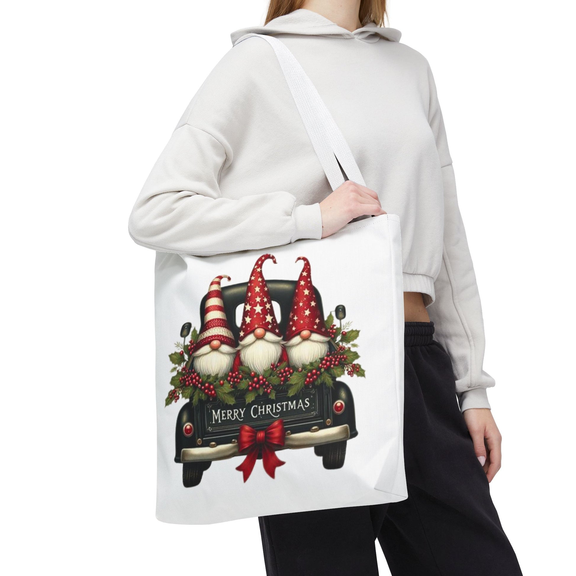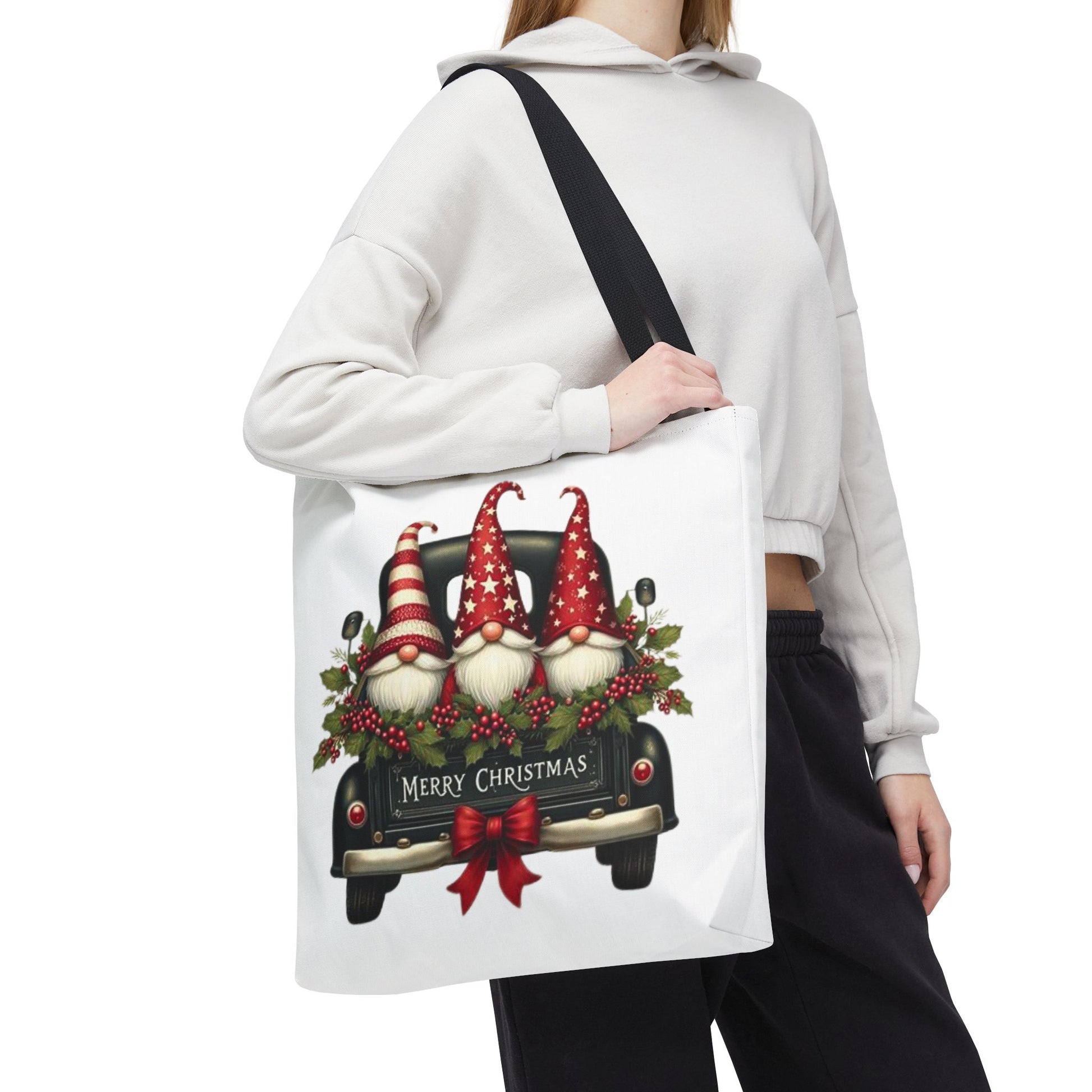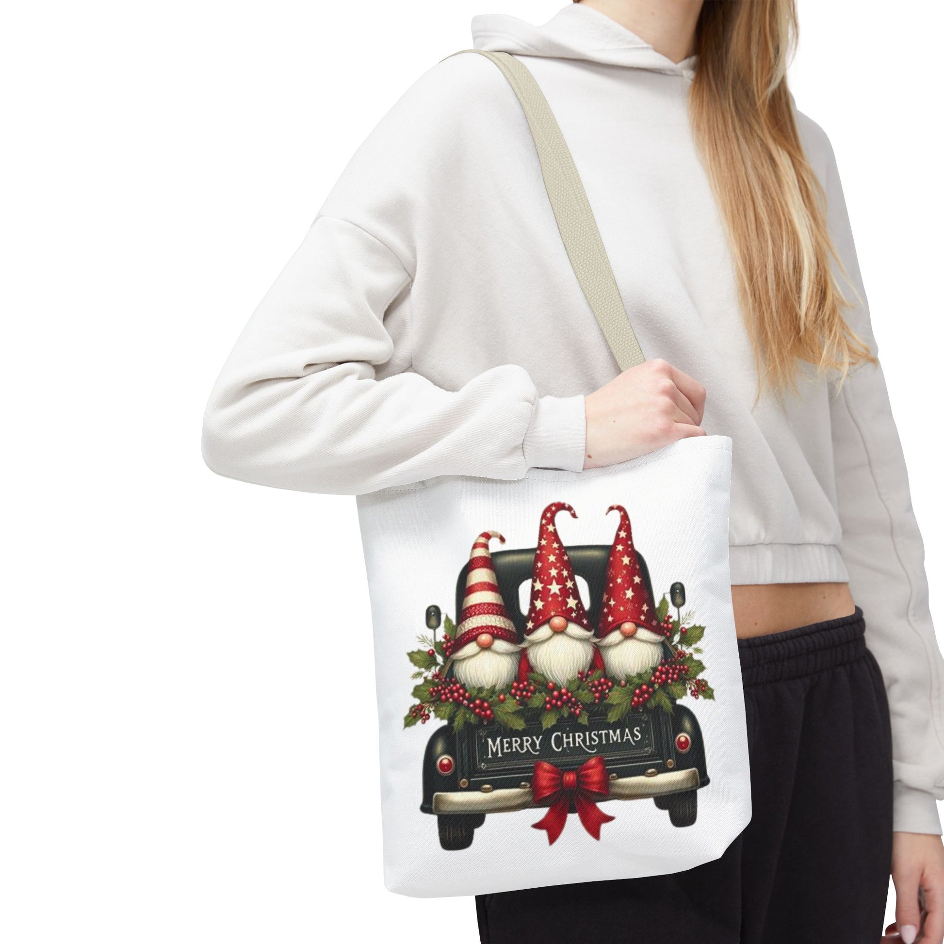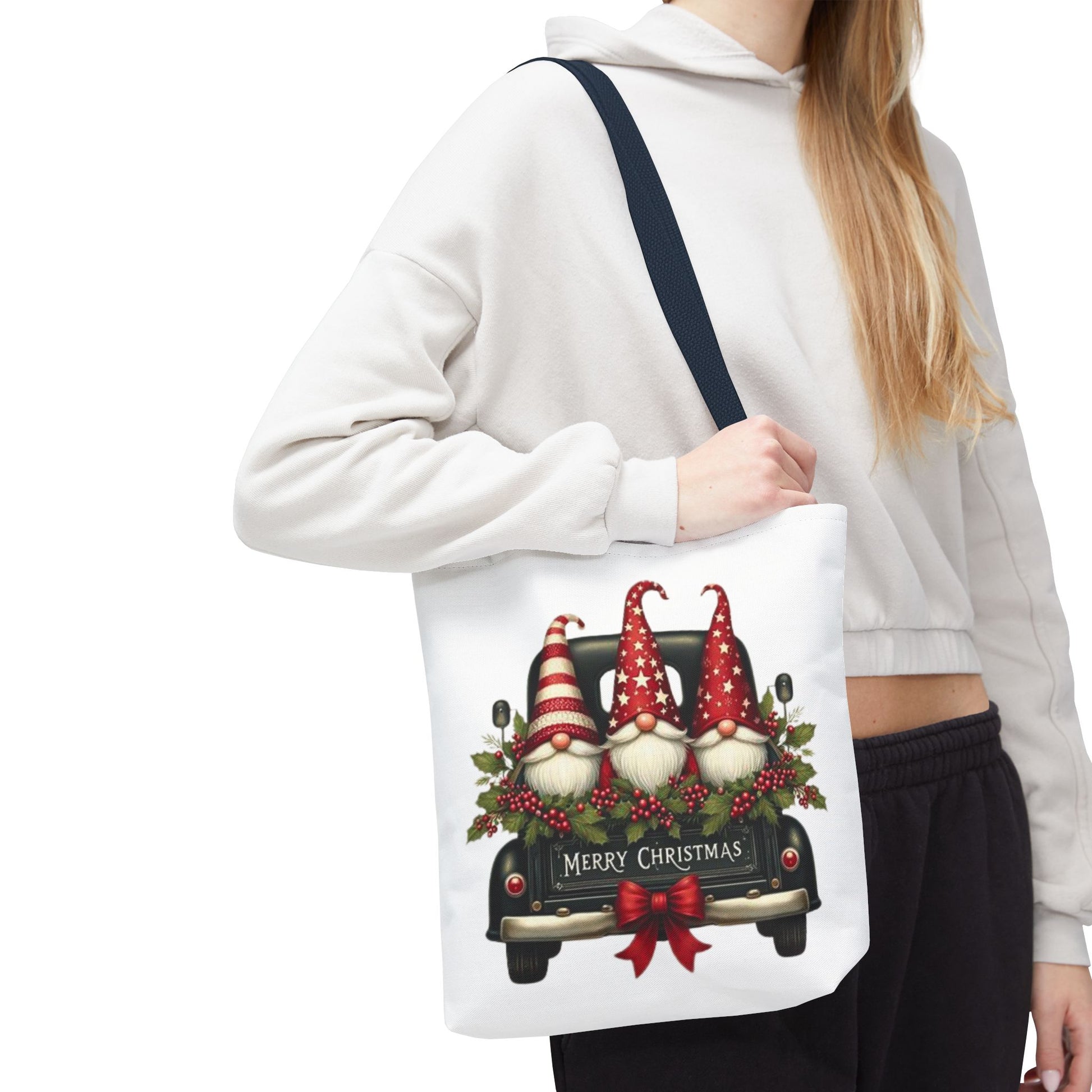 3 Christmas Gnomes in Truck Tote Bag, Fun Holiday Gift