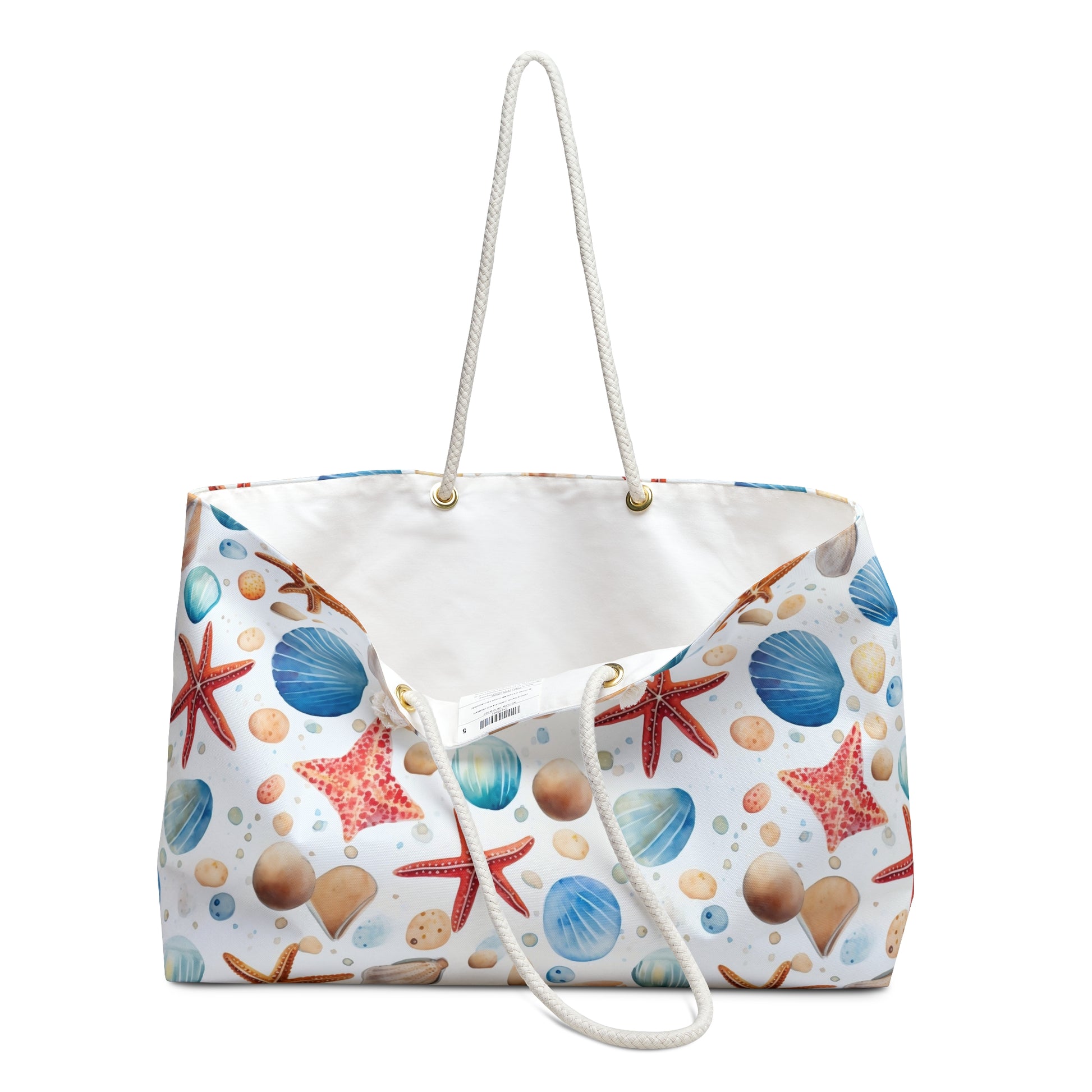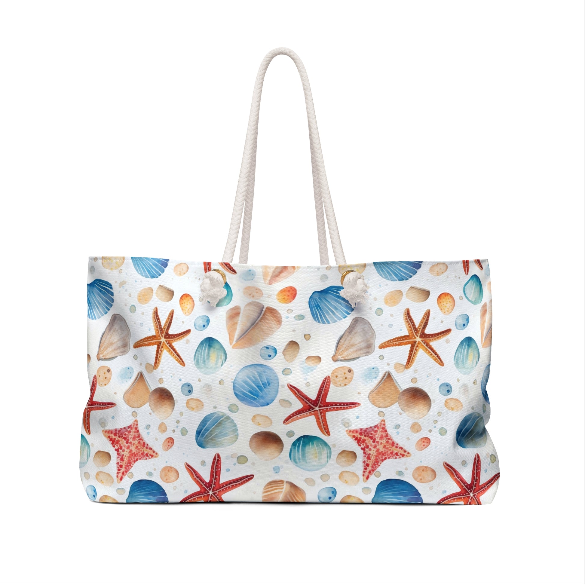 Meet your new favorite companion for weekend getaways and beach days! This Weekender Bag combines style and practicality with its eye-catching design featuring seashells and starfish, perfect for evoking the feel of a sunny coastal retreat. With its spacious size, you can easily fit in your essentials for a short trip or a day by the water. The soft cream-colored rope handles not only add a touch of elegance but also ensure a comfortable grip while you carry your belongings. Ideal for beach lovers, frequent travelers, or anyone looking to add a pop of vibrant personality to their accessory collection. This bag makes an excellent gift for occasions like summer vacations, birthdays, or even as a thoughtful surprise for someone planning a getaway. Make your leisure time stylish and practical with this must-have weekender bag!
