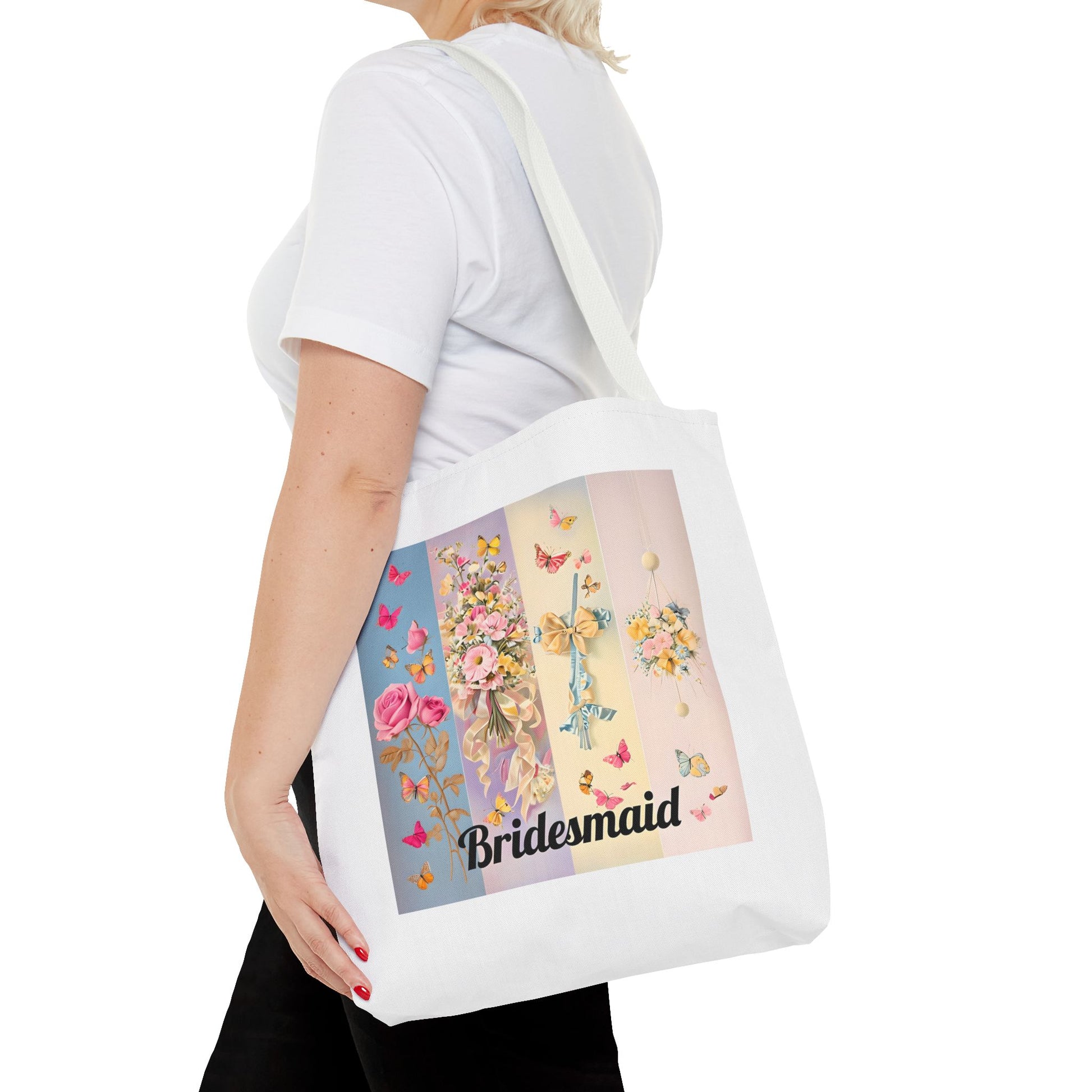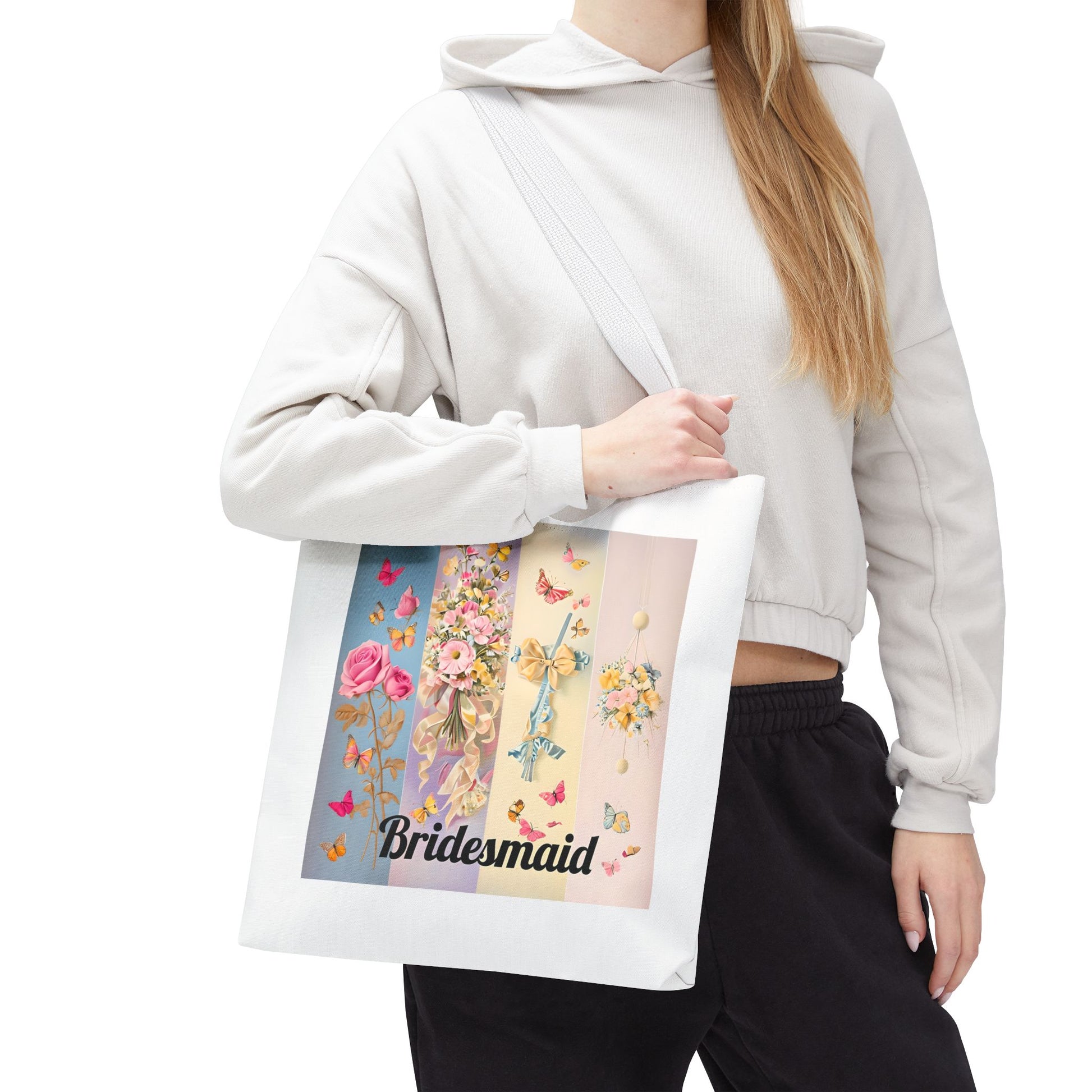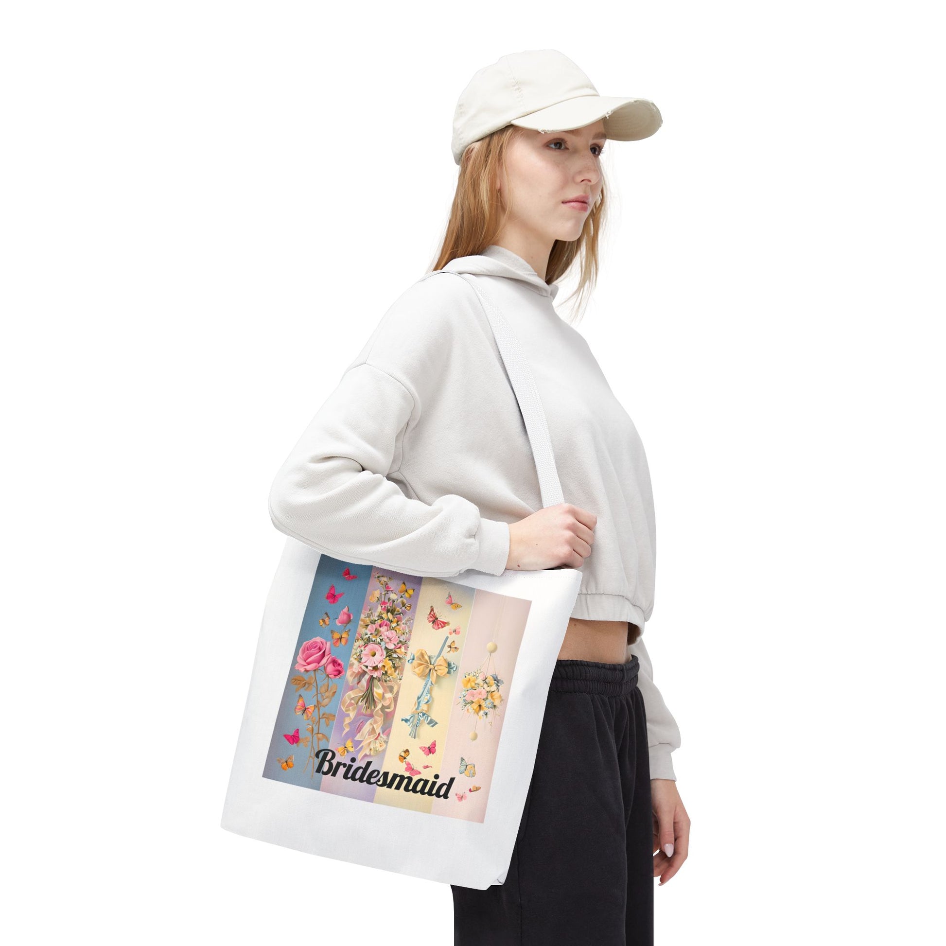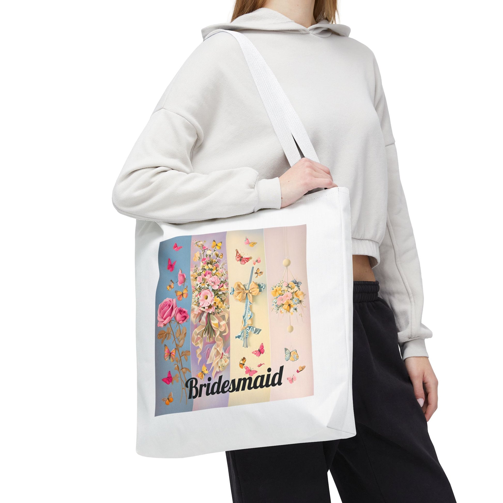 Introducing our stylish Tote Bag, designed to bring a touch of elegance and practicality to your daily adventures. This beautiful tote features artwork that resonates with themes of friendship and celebration, making it a perfect companion for bridesmaids or anyone who loves floral designs. With its spacious interior and durable build, this bag is ideal for carrying essentials for a day out, shopping, or even as a thoughtful gift for special occasions like weddings, bridal showers, or birthdays. The vibrant design provides a cheerful atmosphere, making it a great accessory for both casual outings and festive events. This tote is perfect for fashion-forward individuals who appreciate both style and functionality.