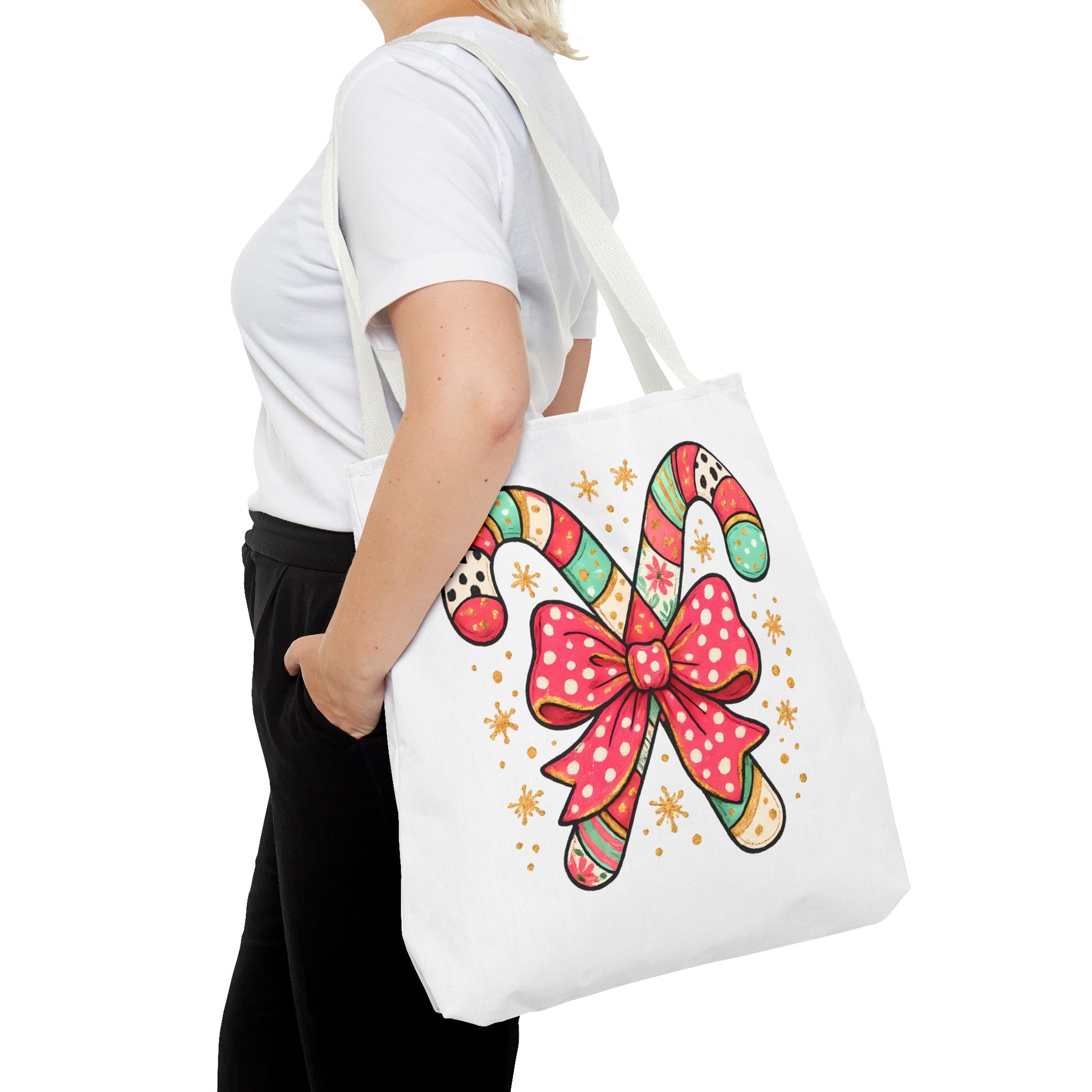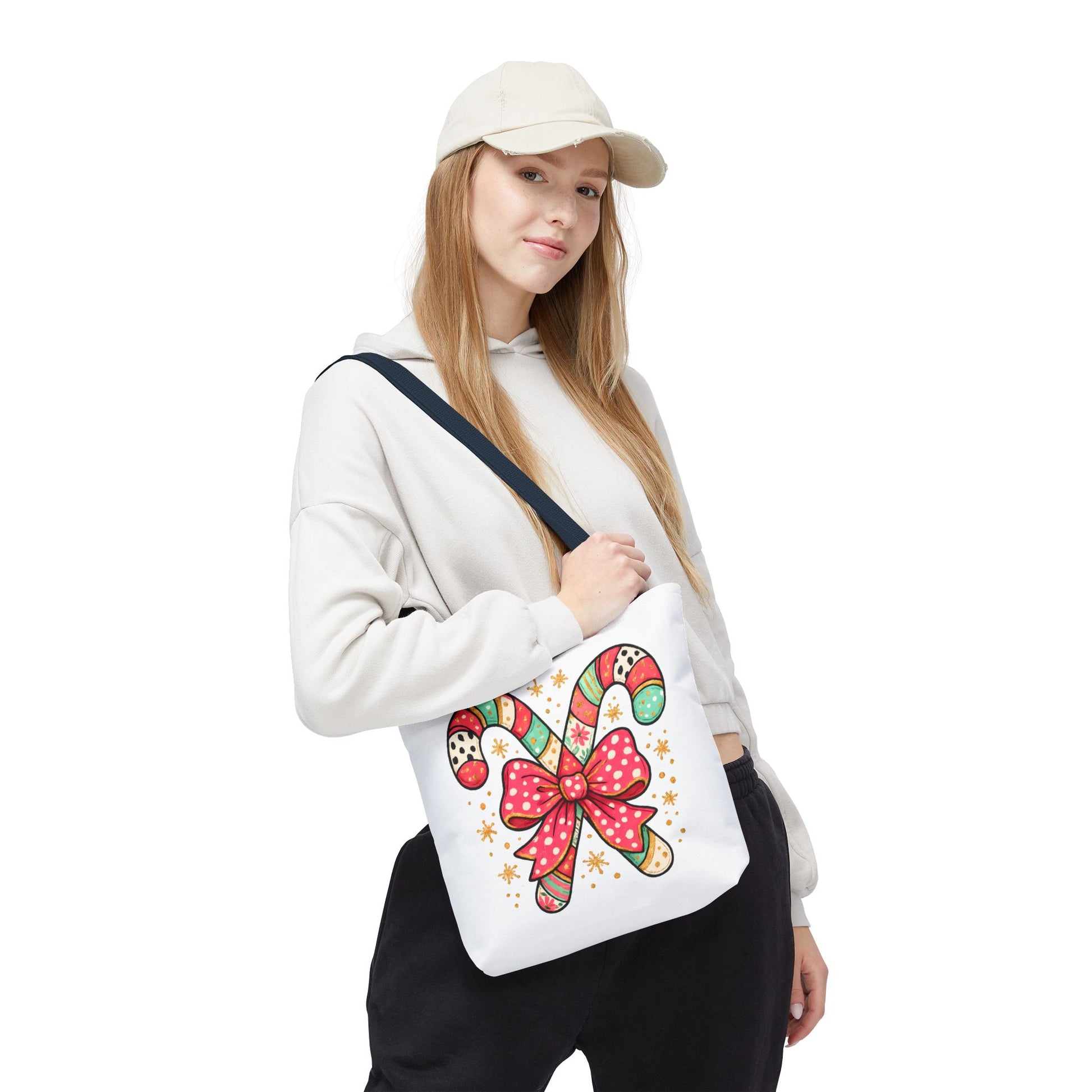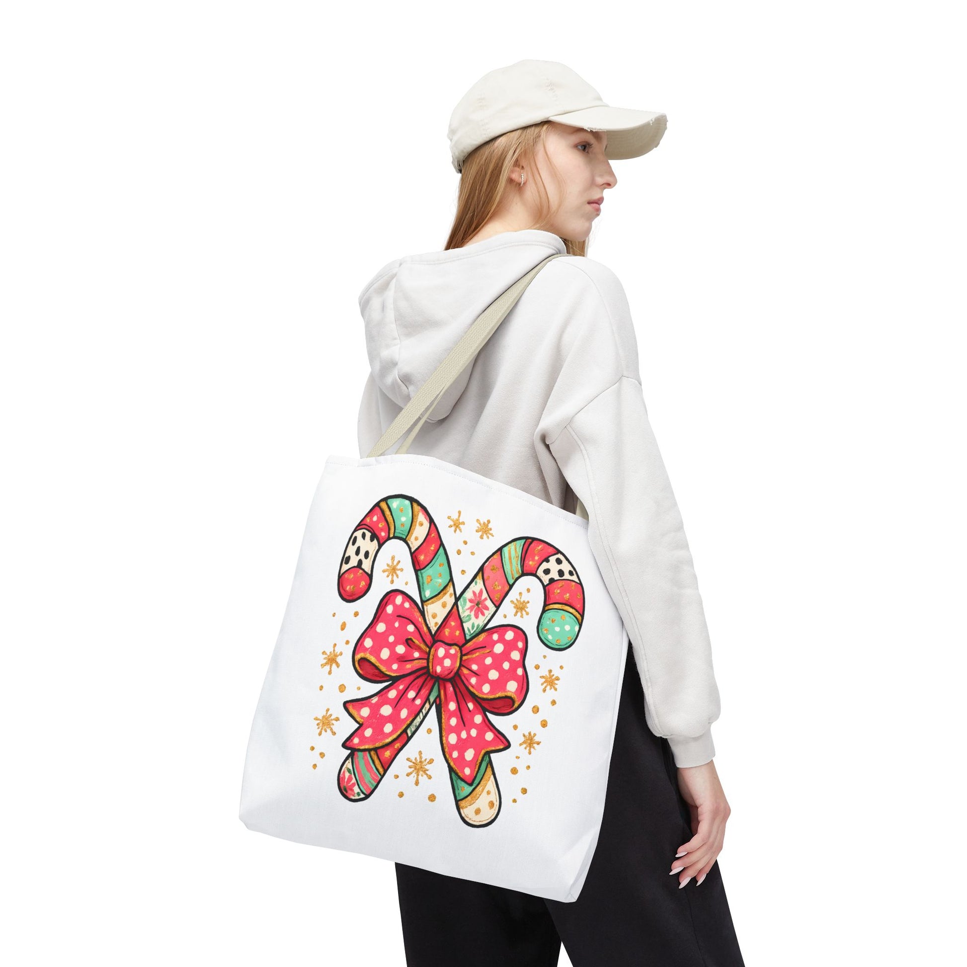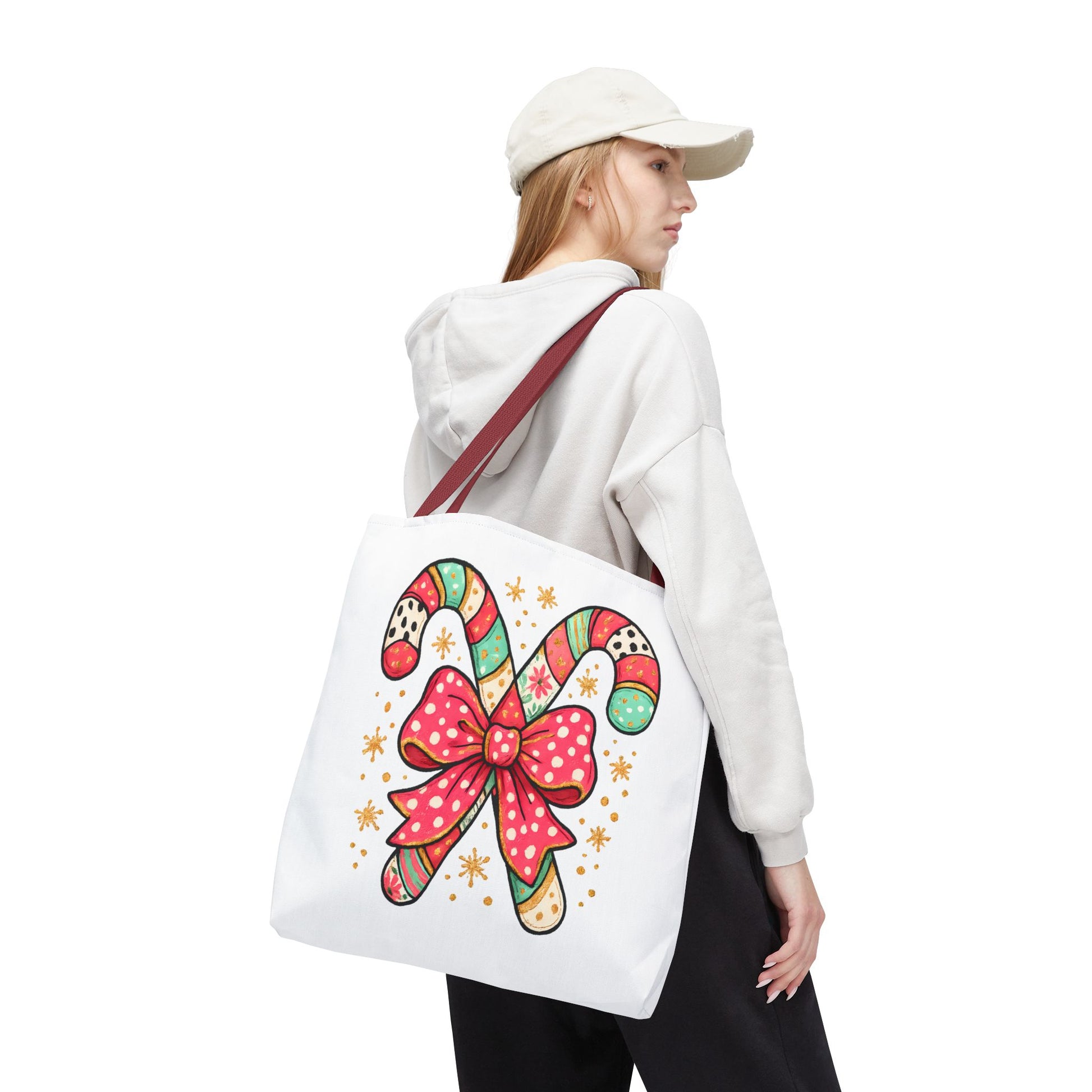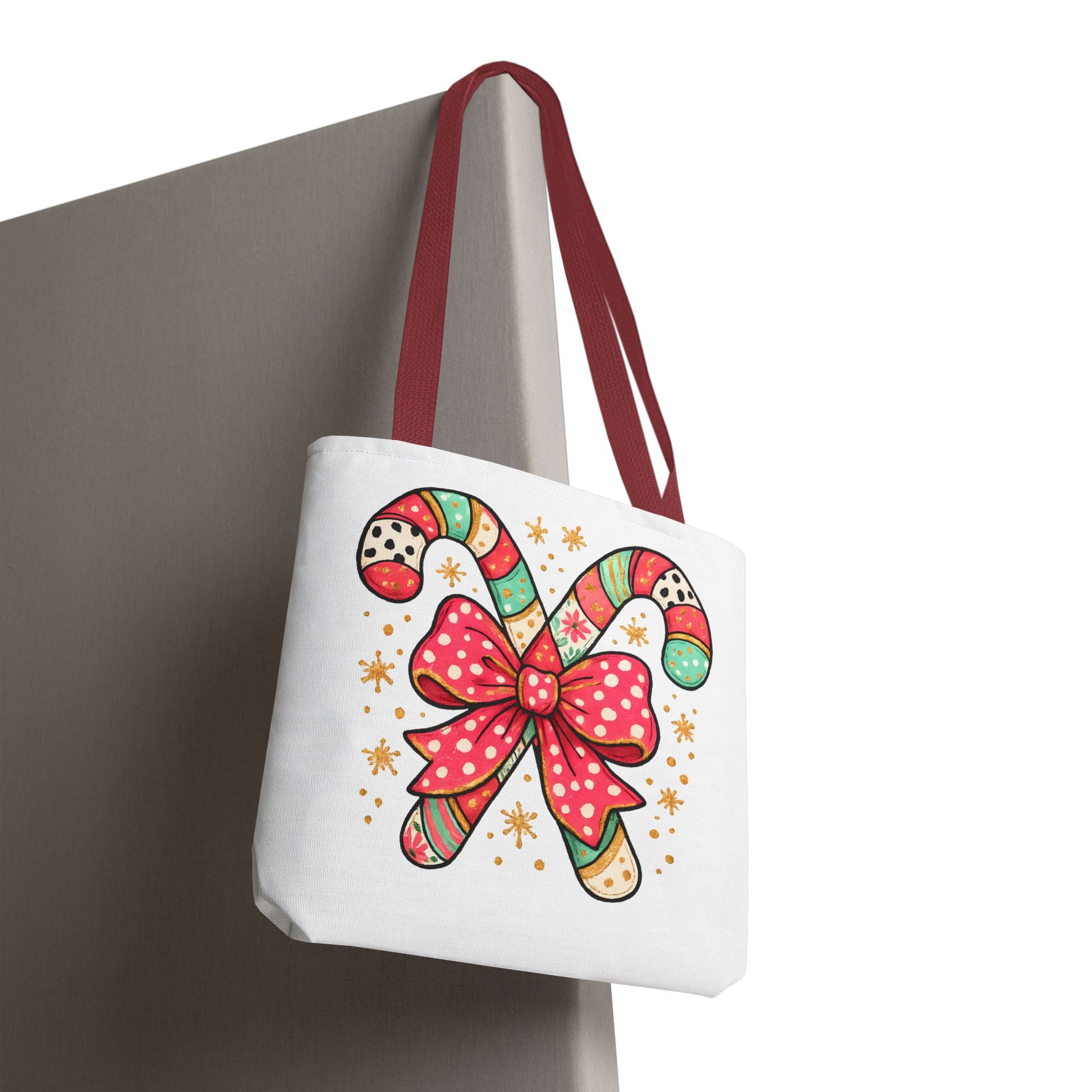 This vibrant tote bag embodies the spirit of joyful celebration, featuring a whimsical candy cane design adorned with a cheerful bow. Perfect for those who want to add a splash of fun to their daily routine, this tote bag is ideal for holiday shopping, festive gatherings, or even a cozy day out. Designed for the merry souls who appreciate a unique accessory that not only stands out but also complements their lifestyle. It makes an excellent gift for friends and family during Christmas, winter celebrations, or any festive occasion. Carry your essentials in style and spread cheer wherever you go!