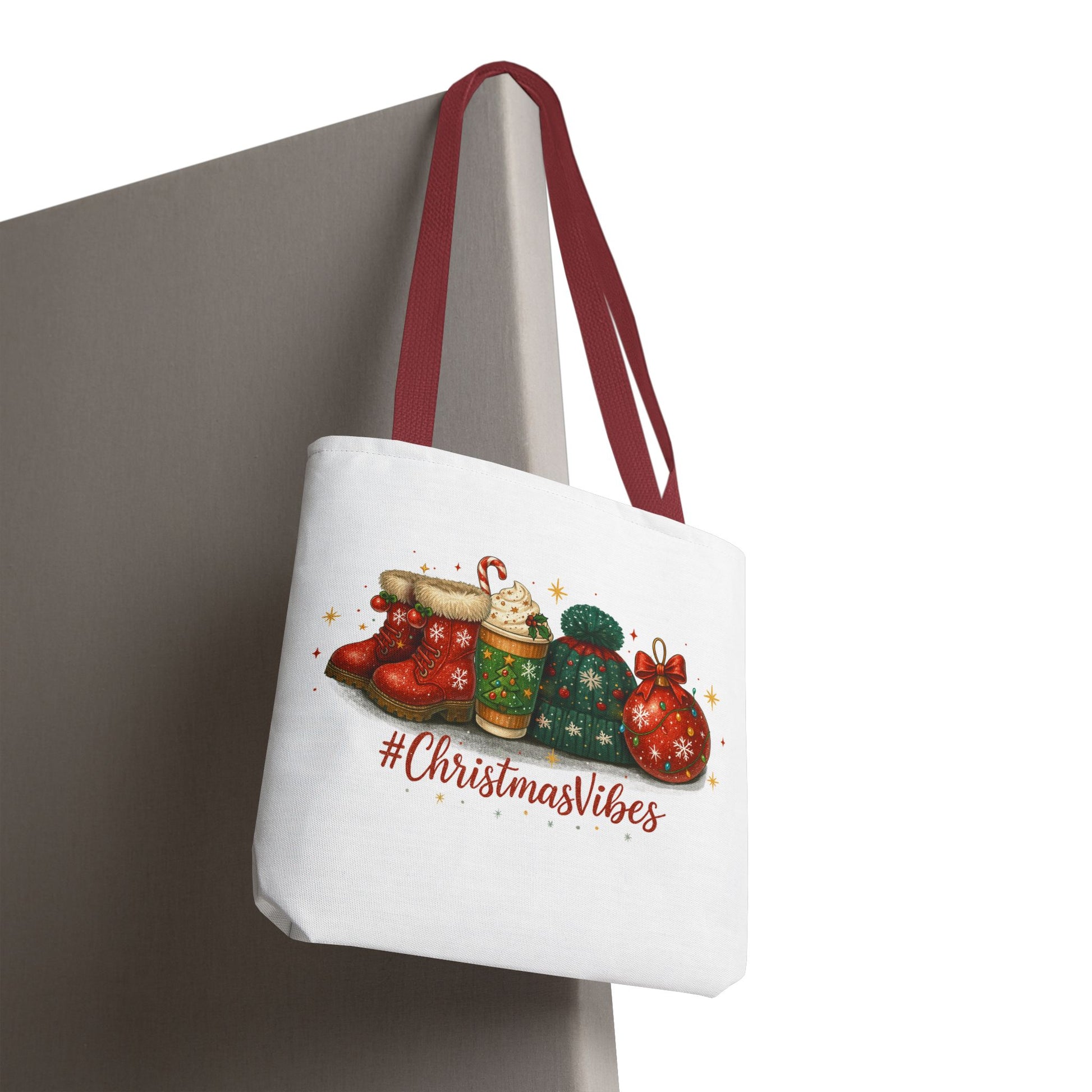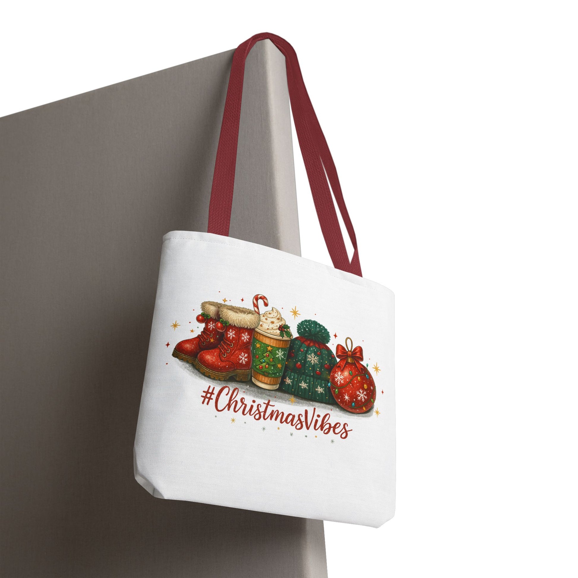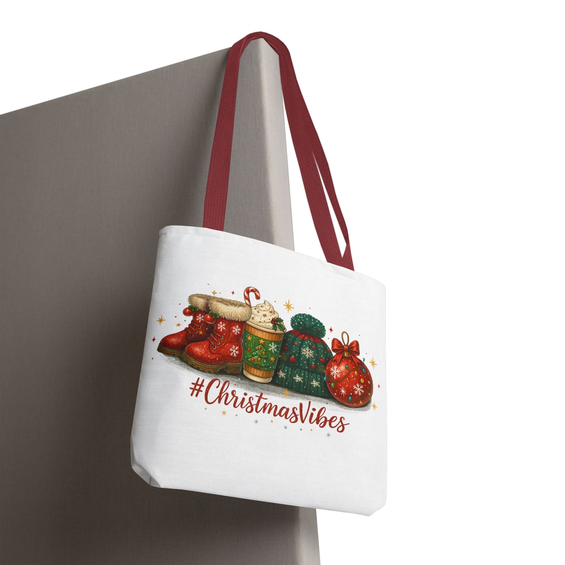 This vibrant Tote Bag is perfect for spreading joy and festive cheer! With its captivating holiday-themed design featuring classic symbols like boots, drinks, and ornaments, it embodies the spirit of Christmas. Whether you’re running errands, heading to a holiday gathering, or shopping for gifts, this tote is a stylish companion that effortlessly blends functionality with charm. Ideal for anyone who loves to celebrate the season, it’s a thoughtful gift for friends, family, or even yourself. Use it for Christmas shopping, holiday parties, or cozy winter outings, and enjoy the warm, festive atmosphere it brings wherever you go!
