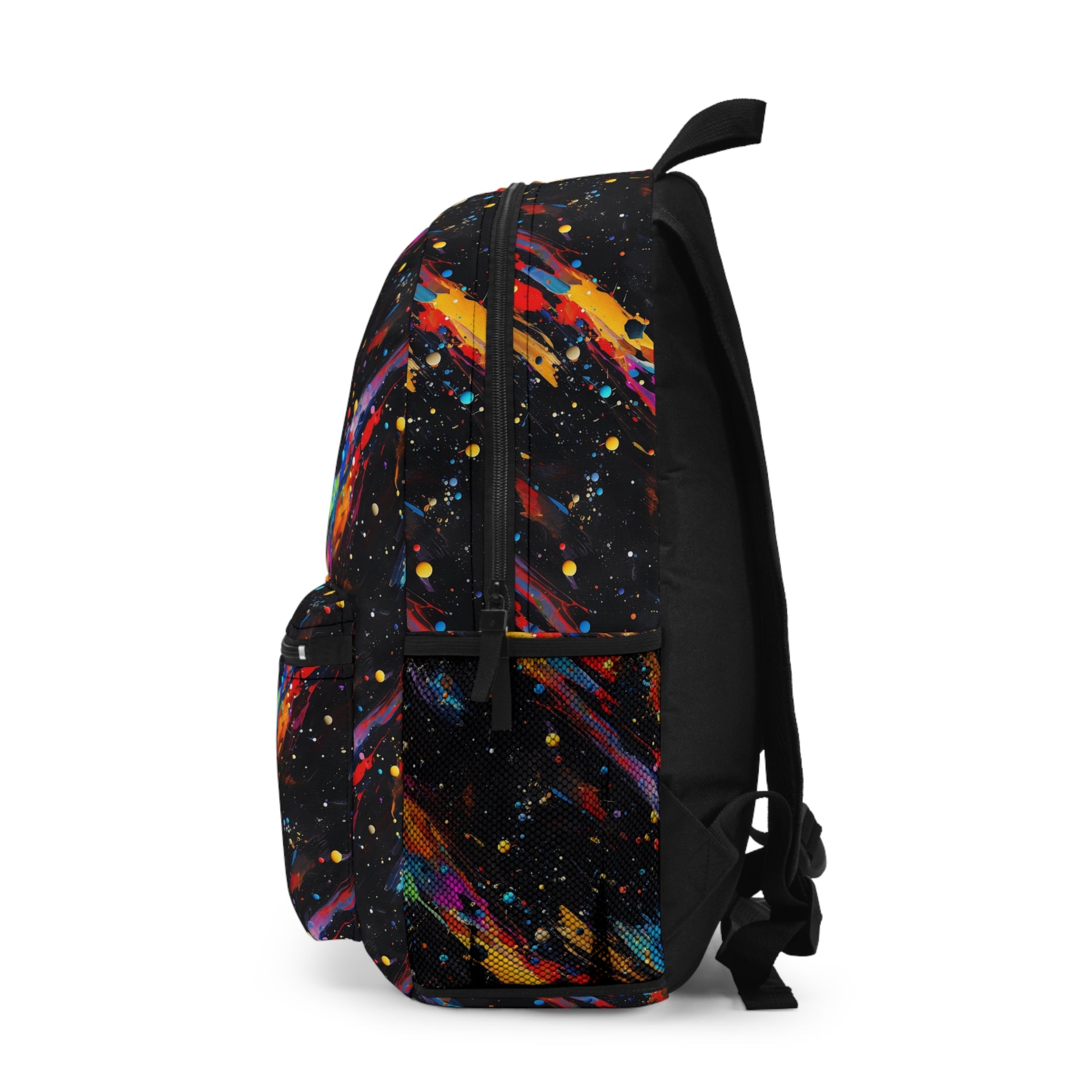 Colorful Galaxy Backpack on a Black Background