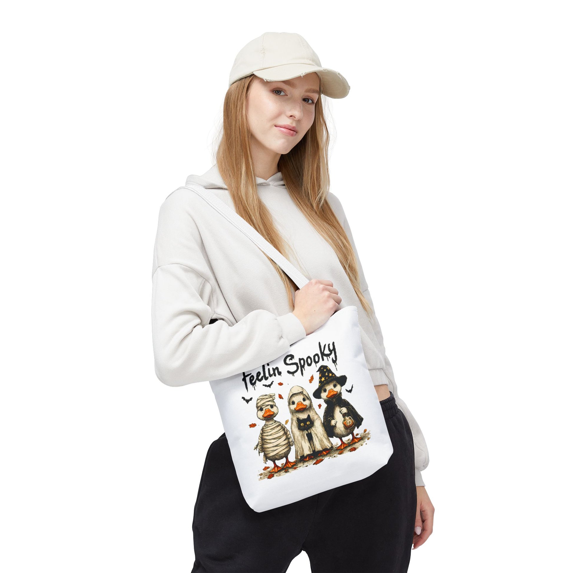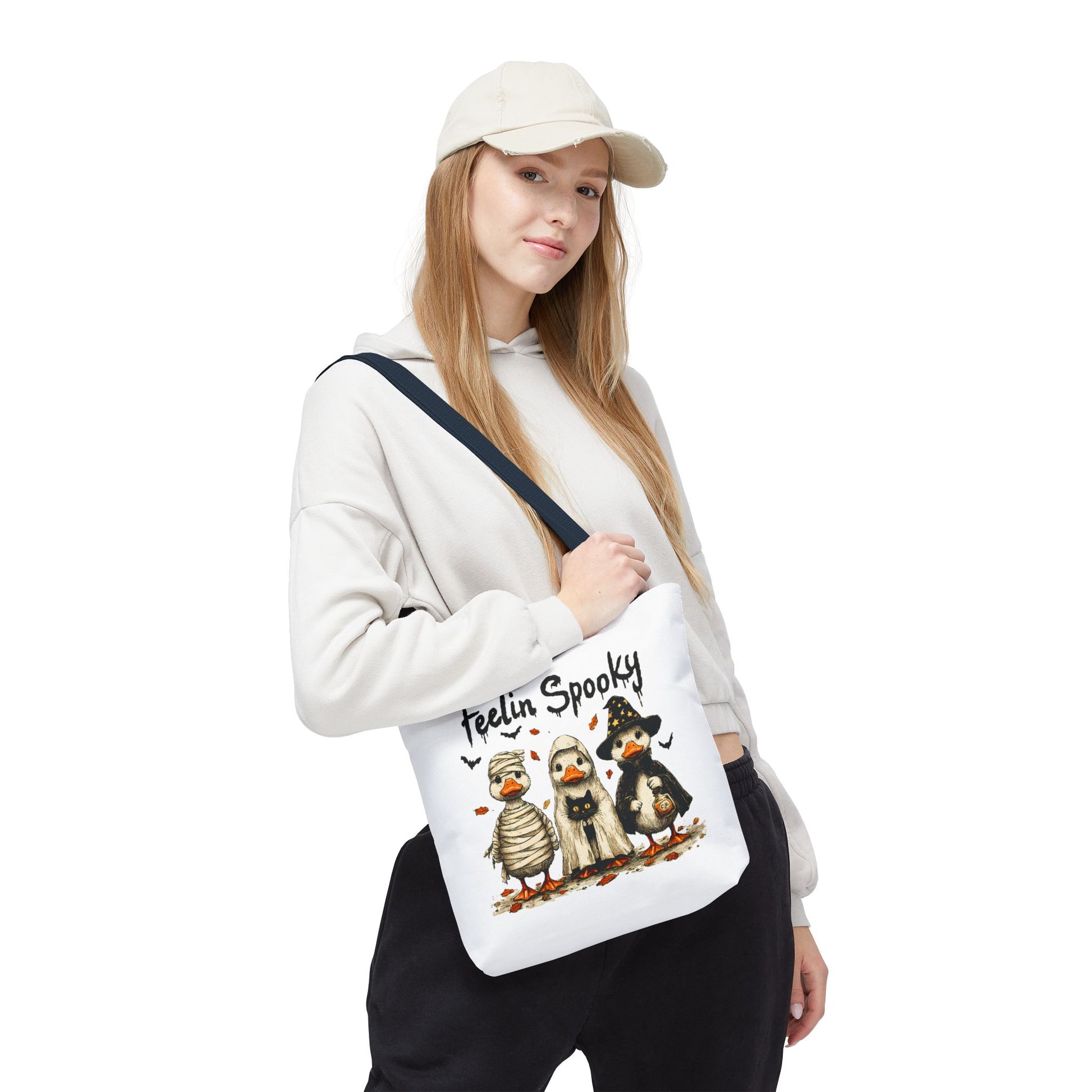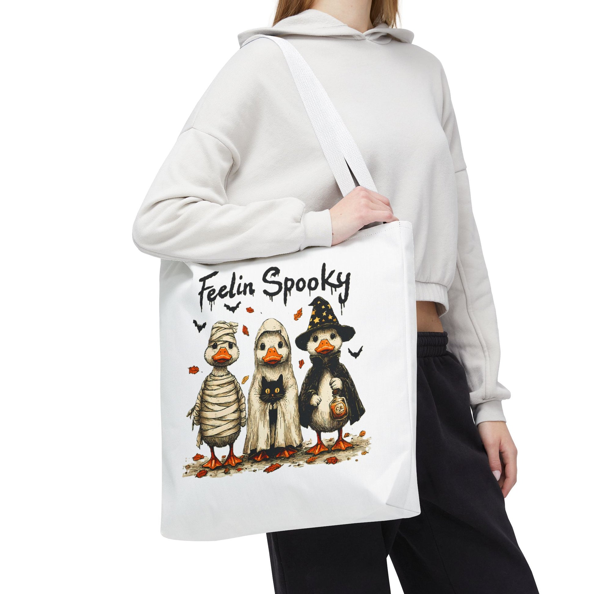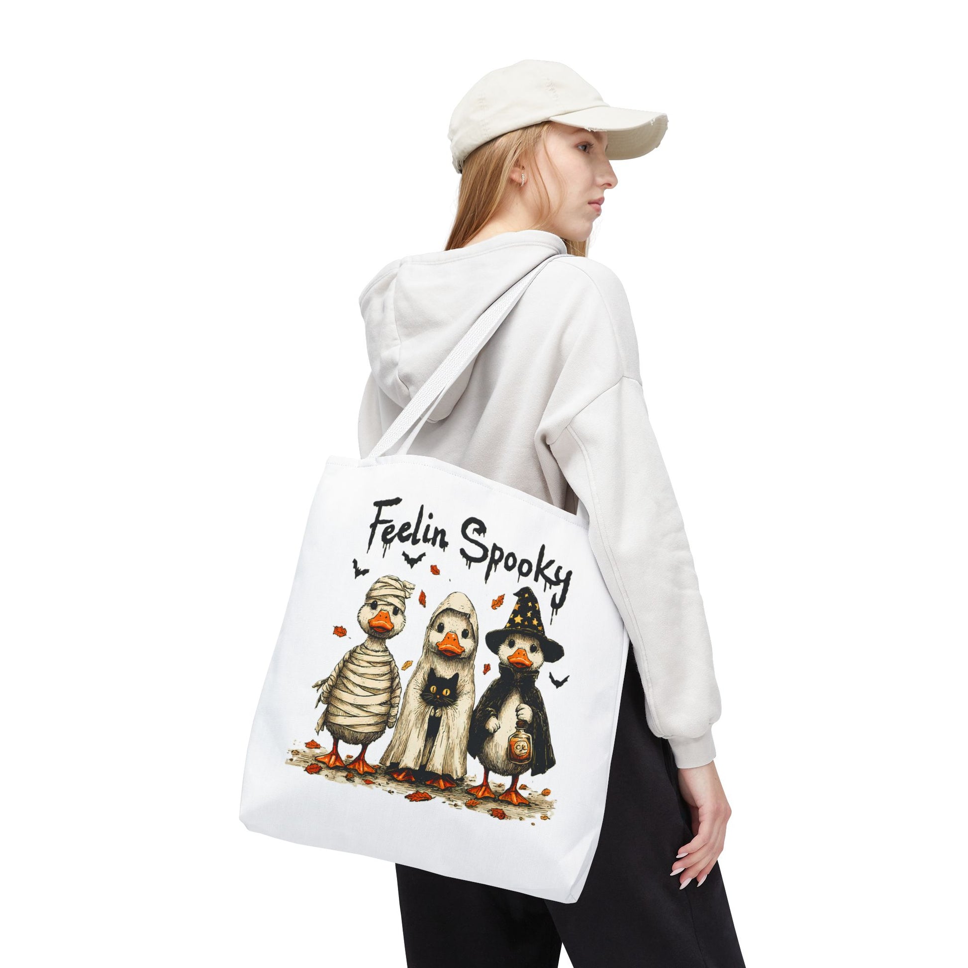 Introducing a whimsical tote bag that instantly captures the spirit of Halloween! Featuring an adorable design, this tote is perfect for those who appreciate a touch of fun in their daily lives. The playful vibe makes it an ideal accessory for casual outings, trick-or-treating events, or as a quirky addition to any festive wardrobe. Whether you're a Halloween enthusiast or just love unique designs, this tote bag serves as a delightful carry-all for your essentials. Perfect for spooky season celebrations like Halloween parties, pumpkin picking, or ghost tours, it's a must-have for anyone looking to add some festive flair to their ensemble.