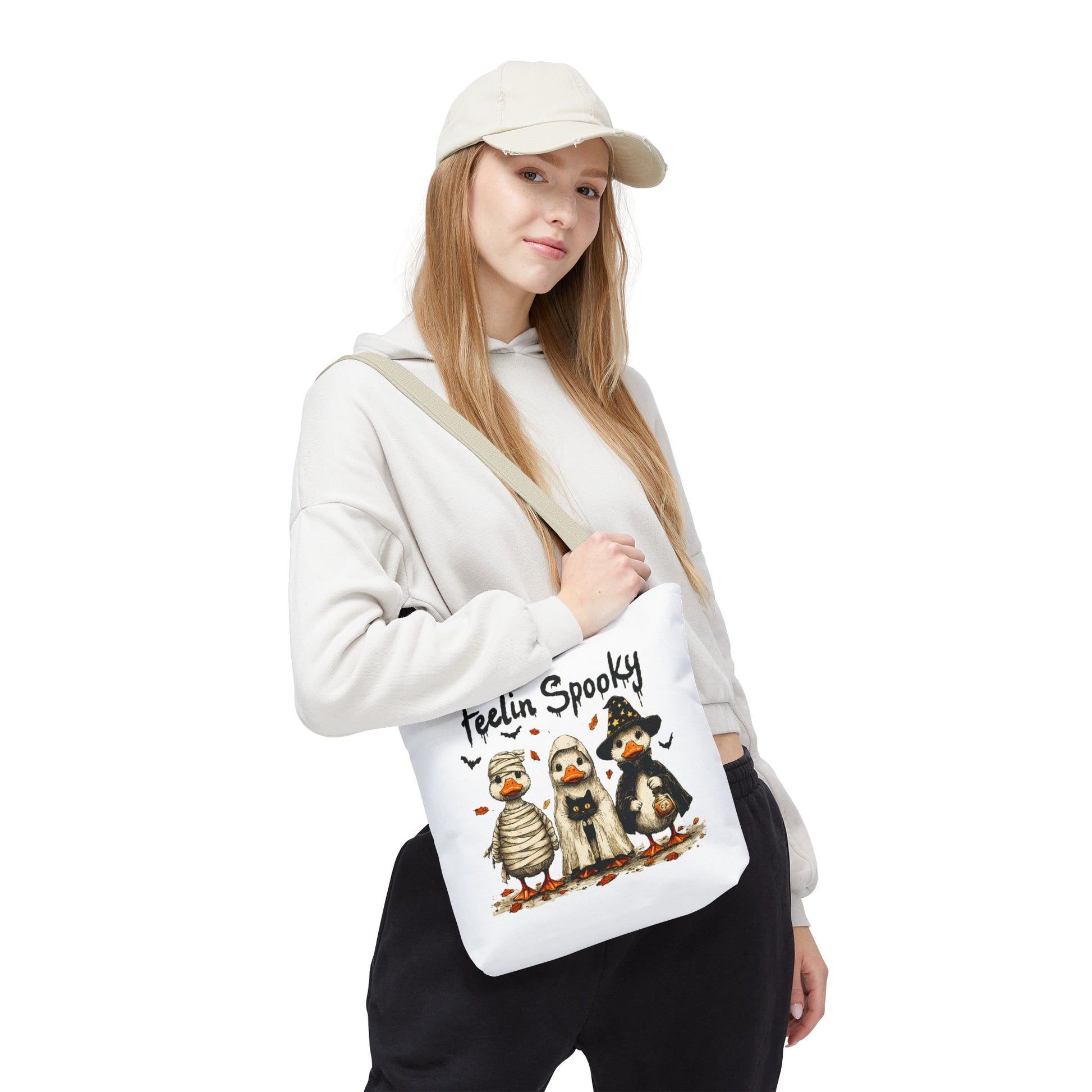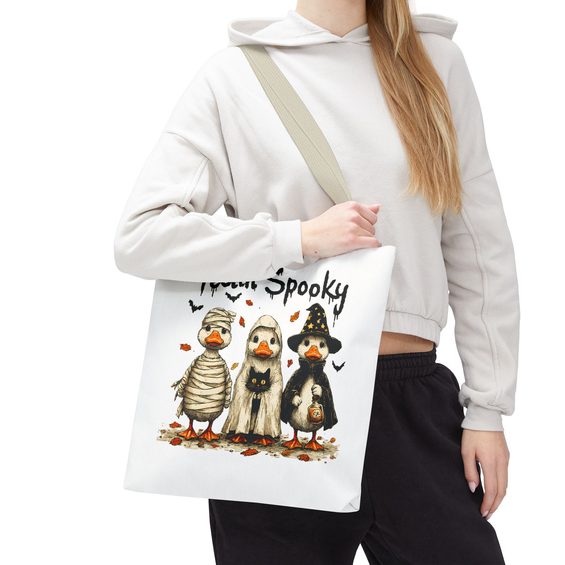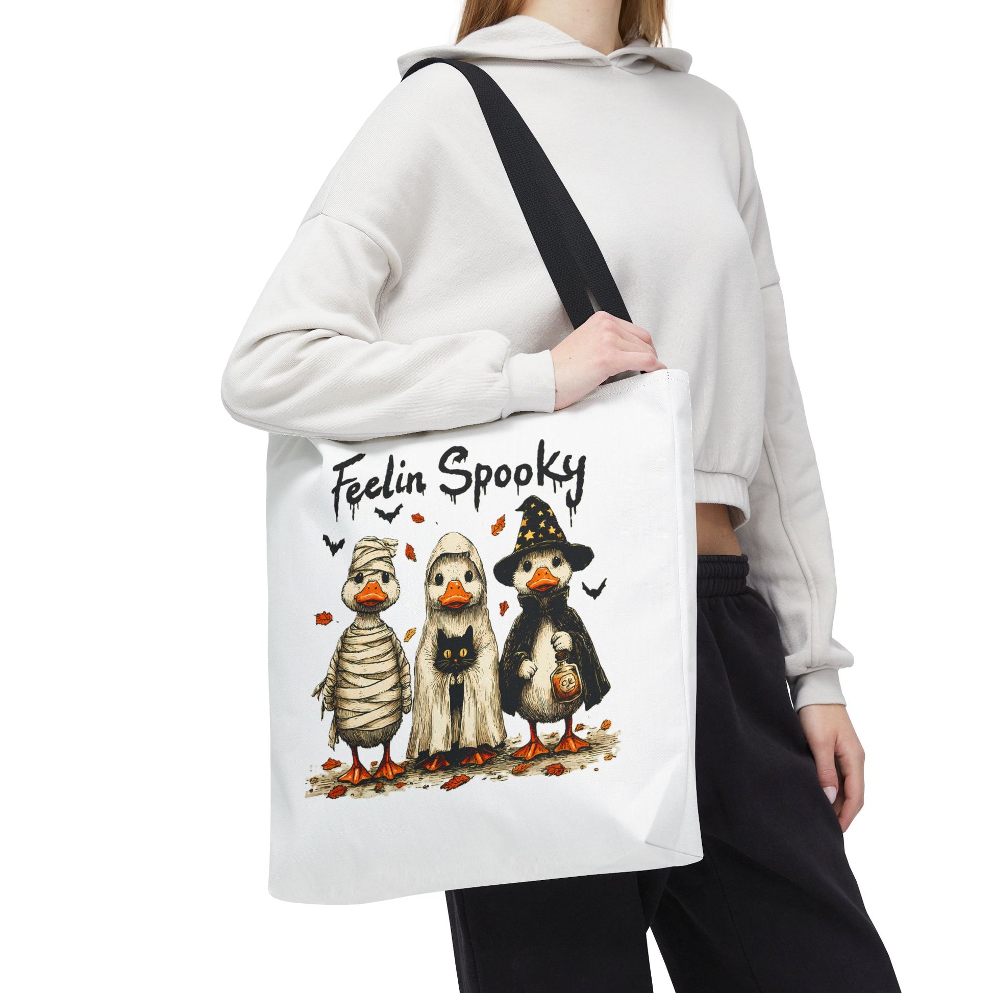 Introducing a whimsical tote bag that instantly captures the spirit of Halloween! Featuring an adorable design, this tote is perfect for those who appreciate a touch of fun in their daily lives. The playful vibe makes it an ideal accessory for casual outings, trick-or-treating events, or as a quirky addition to any festive wardrobe. Whether you're a Halloween enthusiast or just love unique designs, this tote bag serves as a delightful carry-all for your essentials. Perfect for spooky season celebrations like Halloween parties, pumpkin picking, or ghost tours, it's a must-have for anyone looking to add some festive flair to their ensemble.