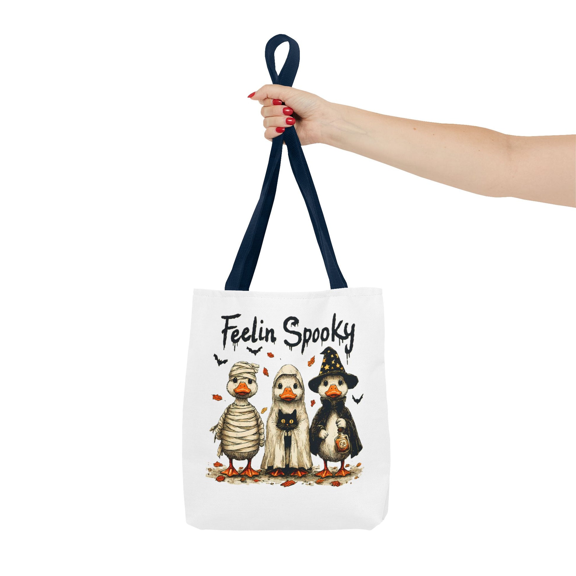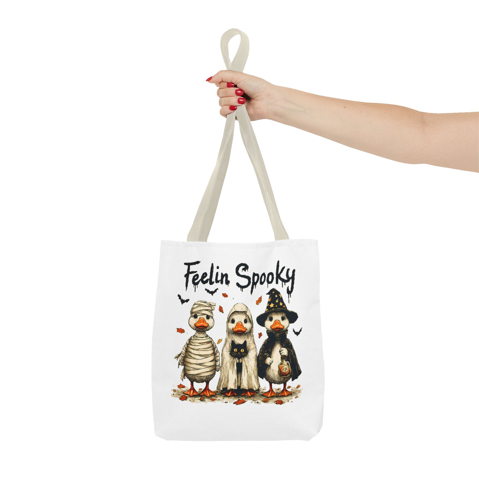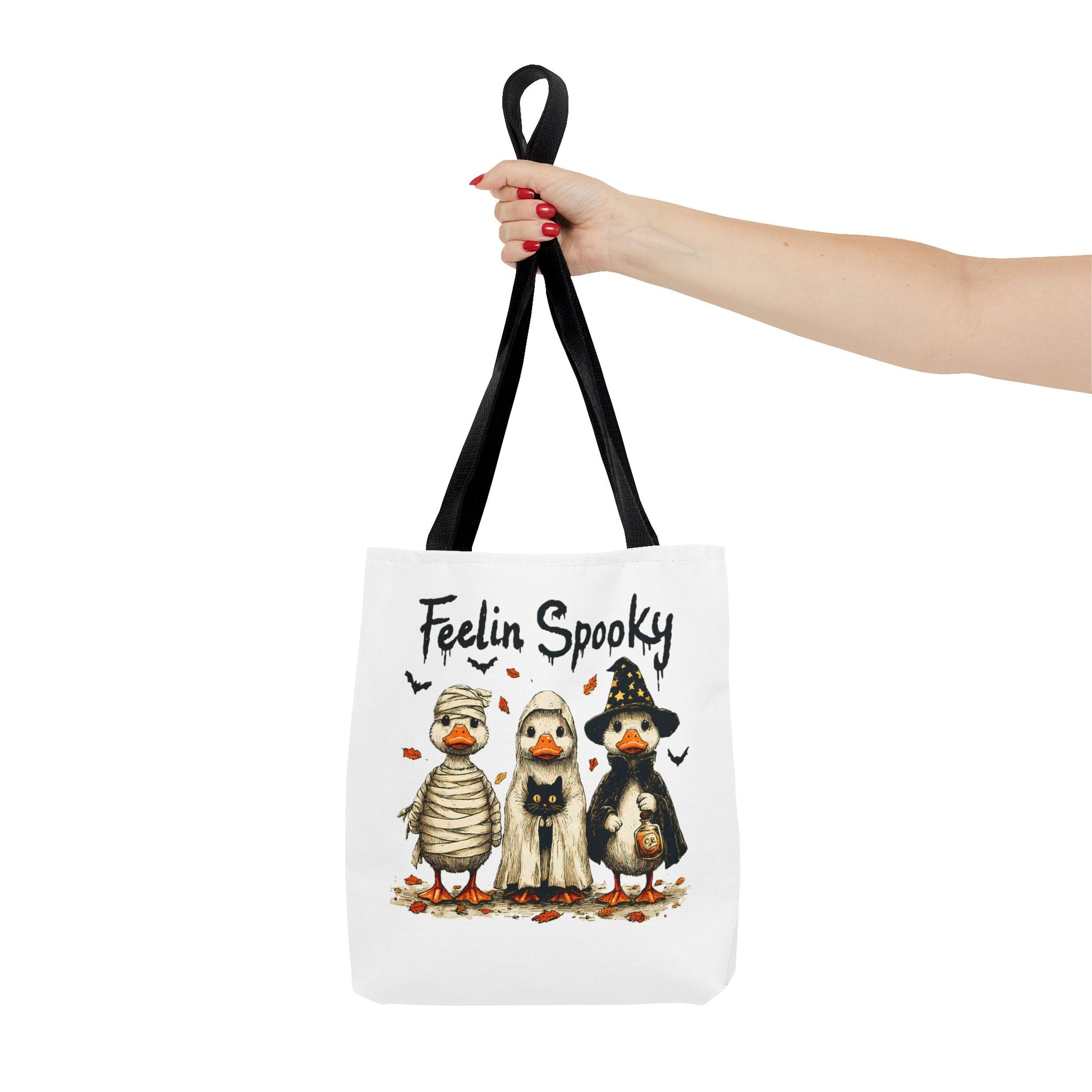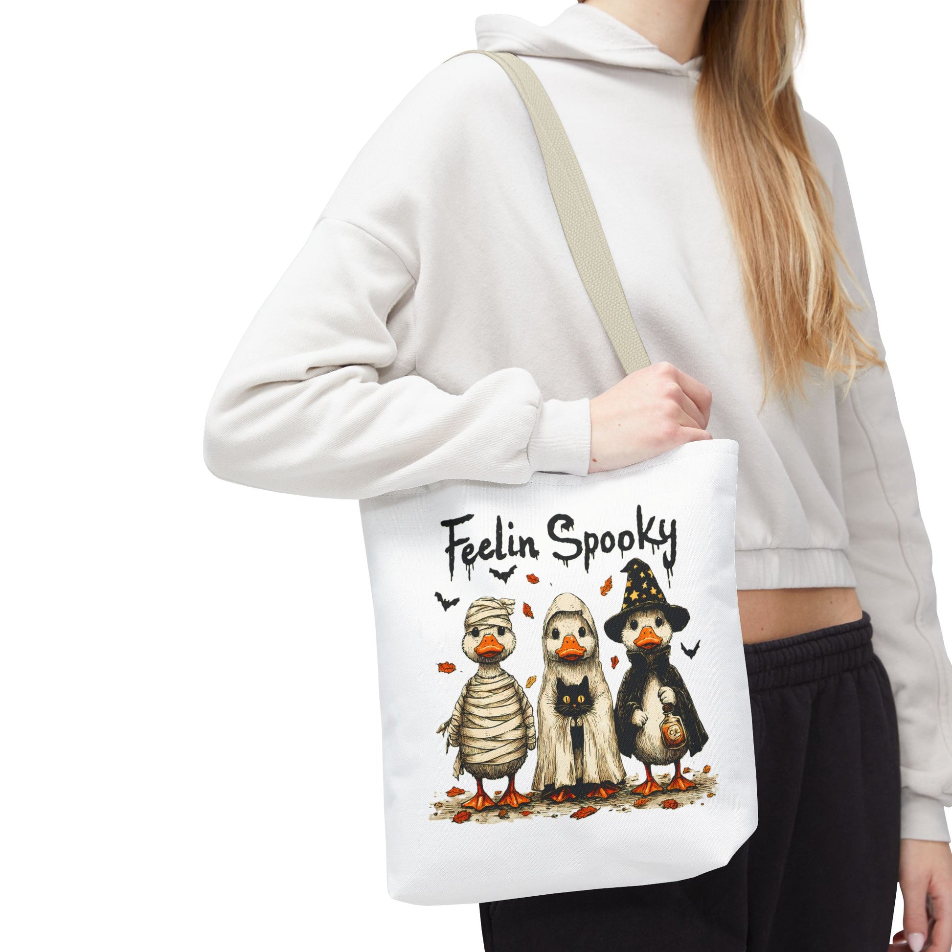 Introducing a whimsical tote bag that instantly captures the spirit of Halloween! Featuring an adorable design, this tote is perfect for those who appreciate a touch of fun in their daily lives. The playful vibe makes it an ideal accessory for casual outings, trick-or-treating events, or as a quirky addition to any festive wardrobe. Whether you're a Halloween enthusiast or just love unique designs, this tote bag serves as a delightful carry-all for your essentials. Perfect for spooky season celebrations like Halloween parties, pumpkin picking, or ghost tours, it's a must-have for anyone looking to add some festive flair to their ensemble.