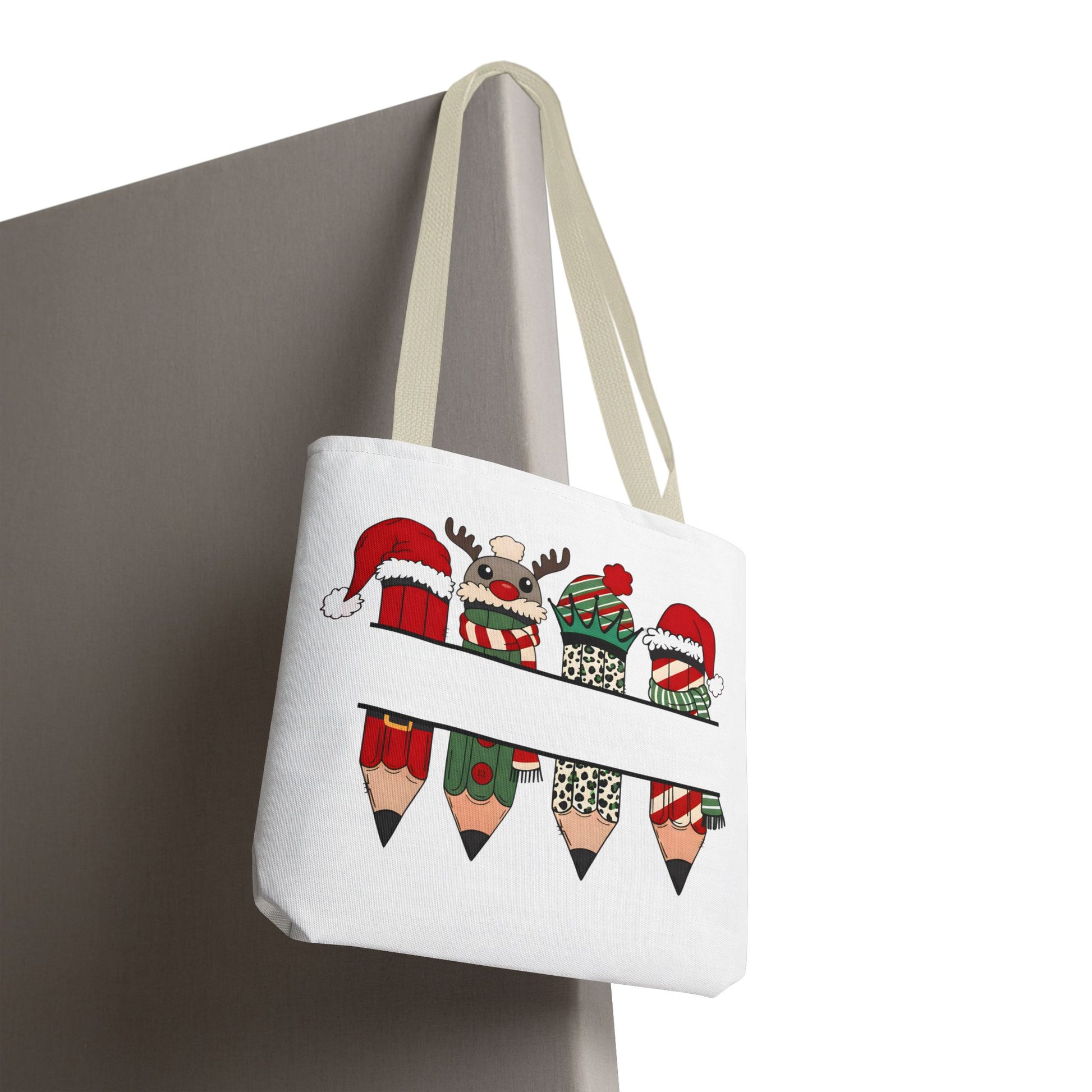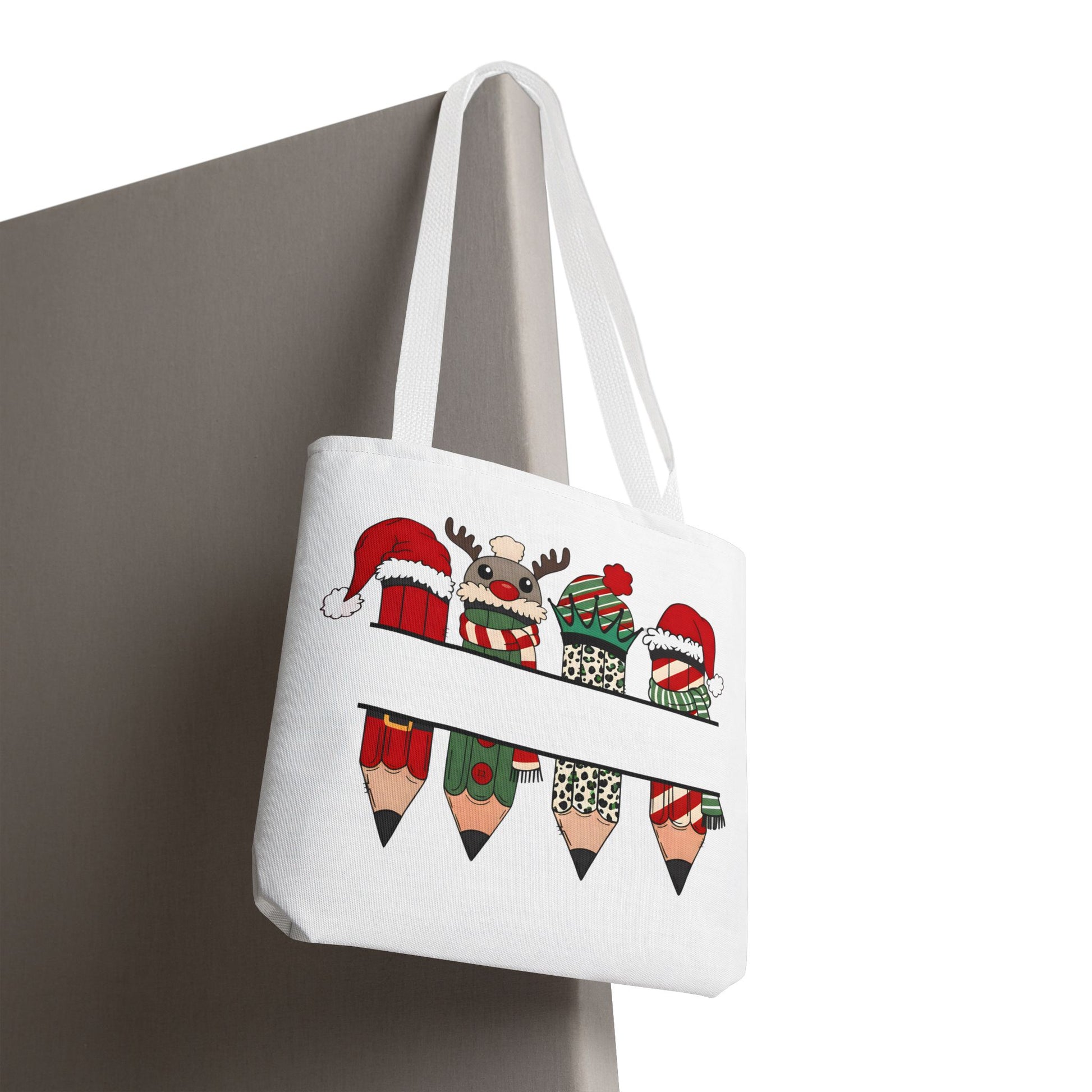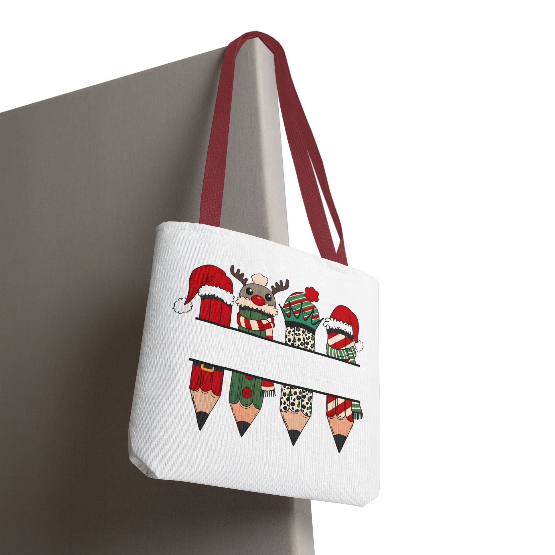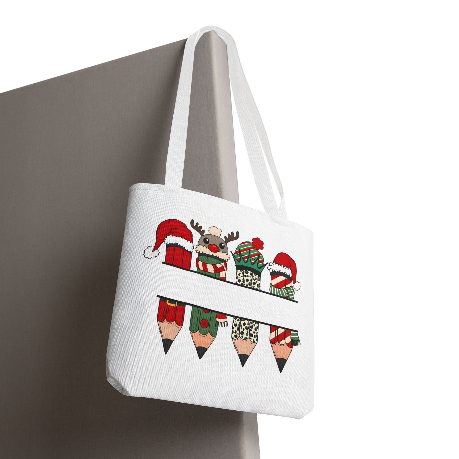 Festive Pencil Reindeer Tote Bag, Holiday Shopping Bag, Christmas Gift Tote, Teacher Appreciation, Winter Decor, Eco-Friendly Bag