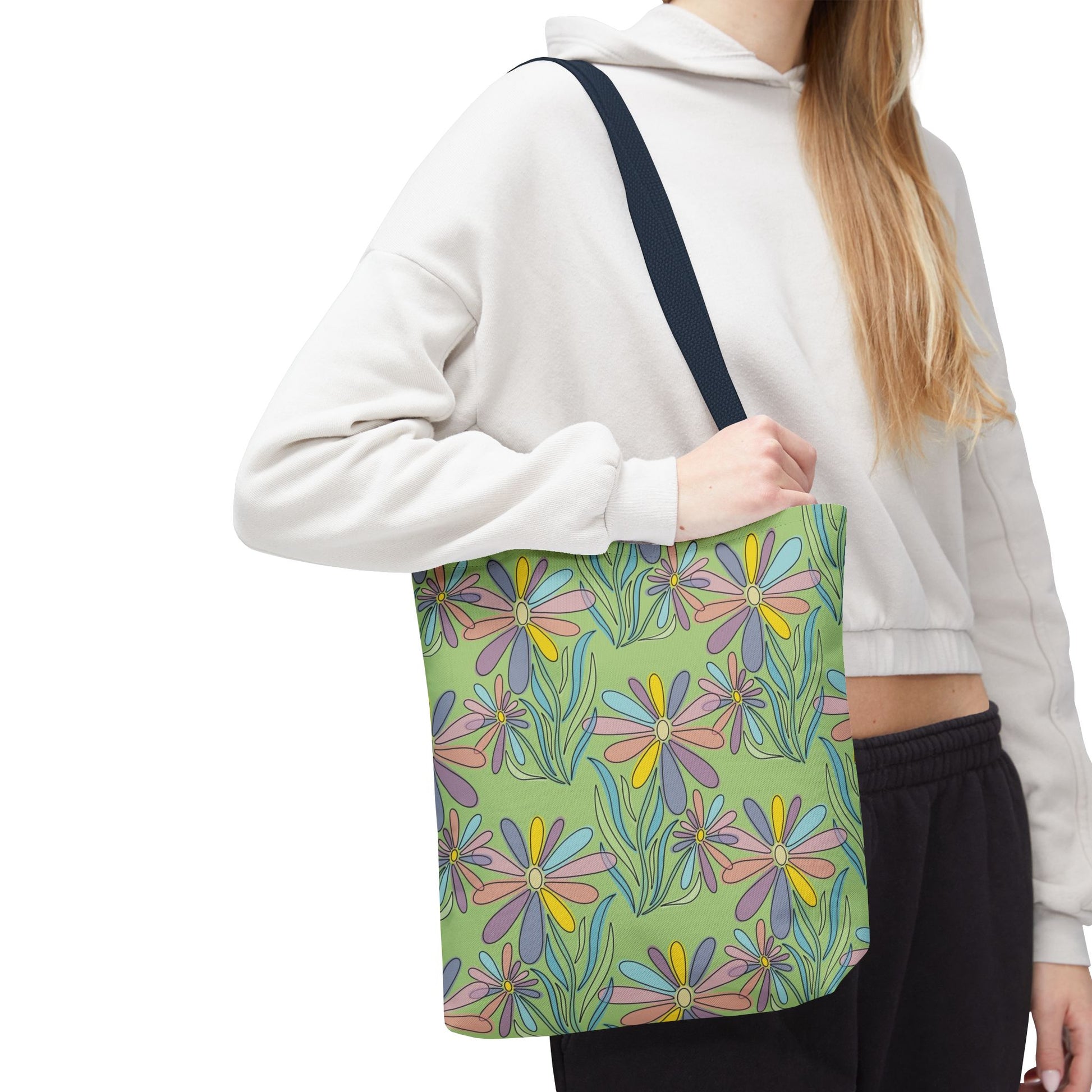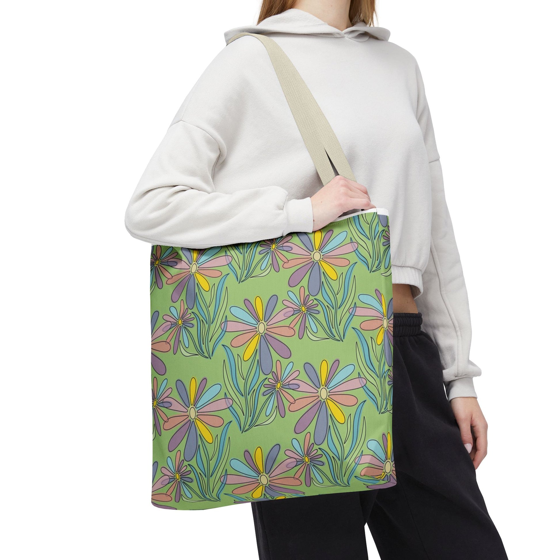 Introducing a vibrant Tote Bag that combines functionality with flair. Adorned with a lively floral design, this bag radiates a cheerful vibe, perfect for adding a splash of color to your daily adventures. Made with 100% polyester, it retains its shape while being incredibly durable—ideal for everyday use. Whether you're heading to the farmers’ market, beach, or an art class, this tote seamlessly fits into your lifestyle. It makes a thoughtful gift for friends and family, perfect for holidays like Mother's Day, birthdays, or any celebration where you want to spread happiness. This stylish and practical tote bag is for those who love to express themselves with bright designs and appreciate quality in their everyday accessories.