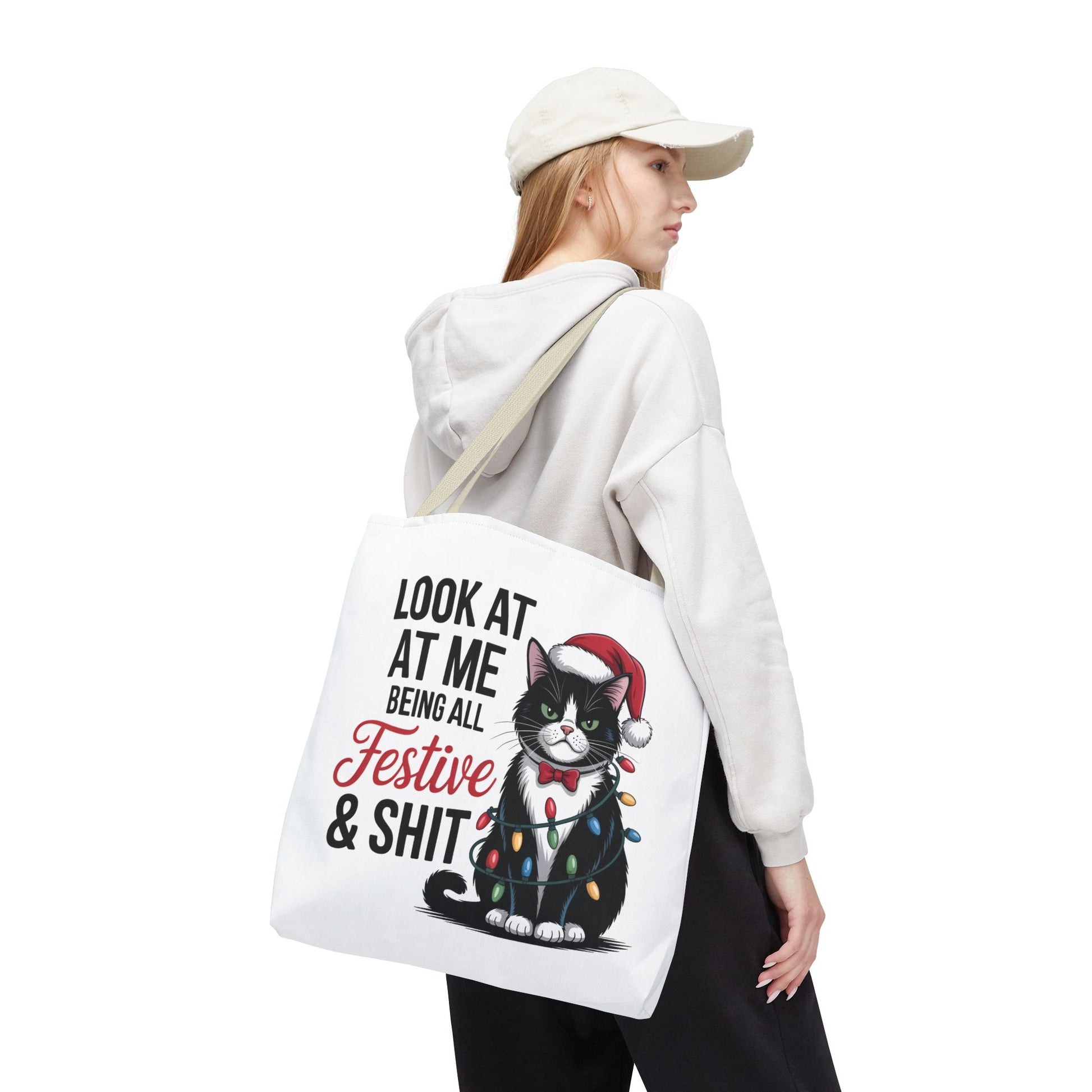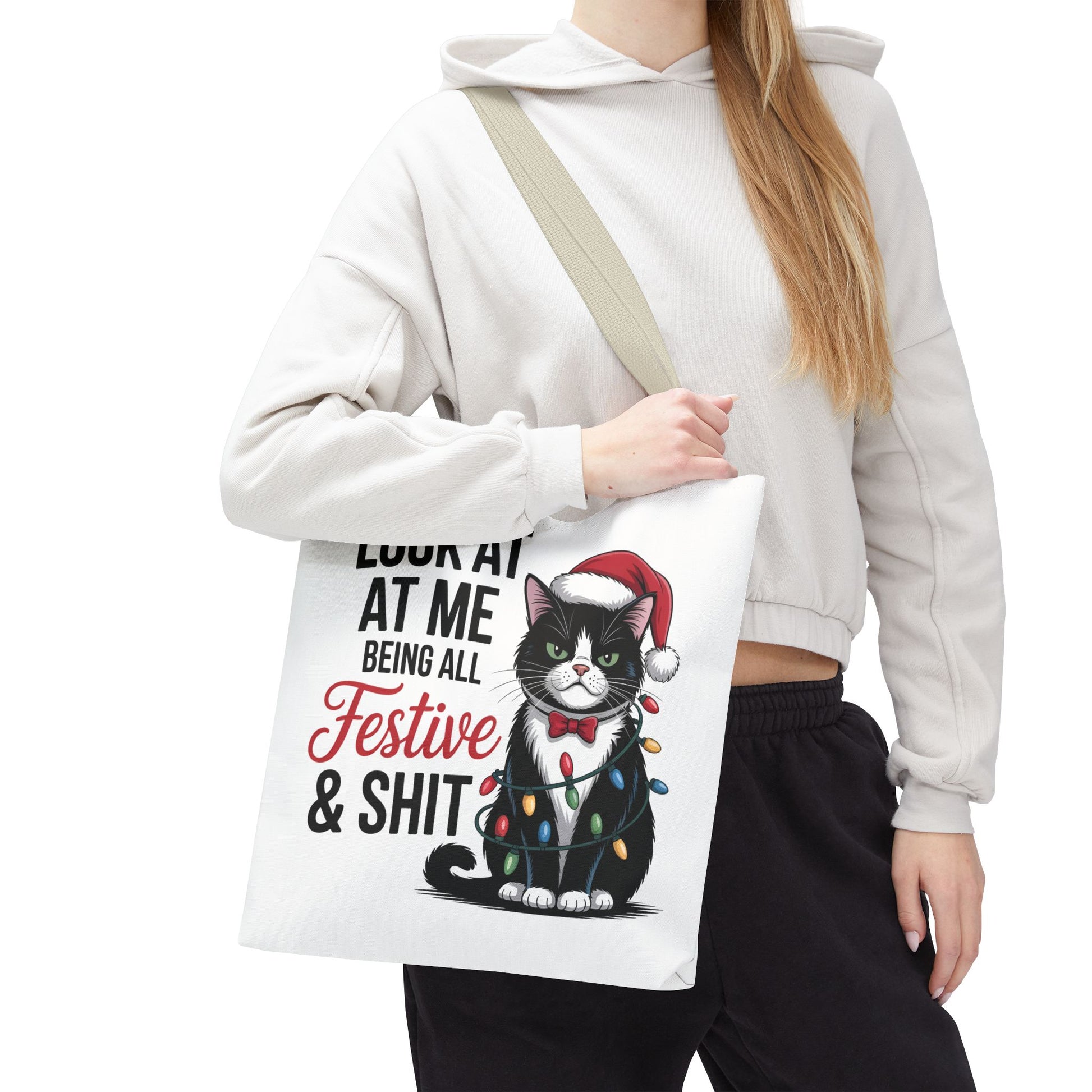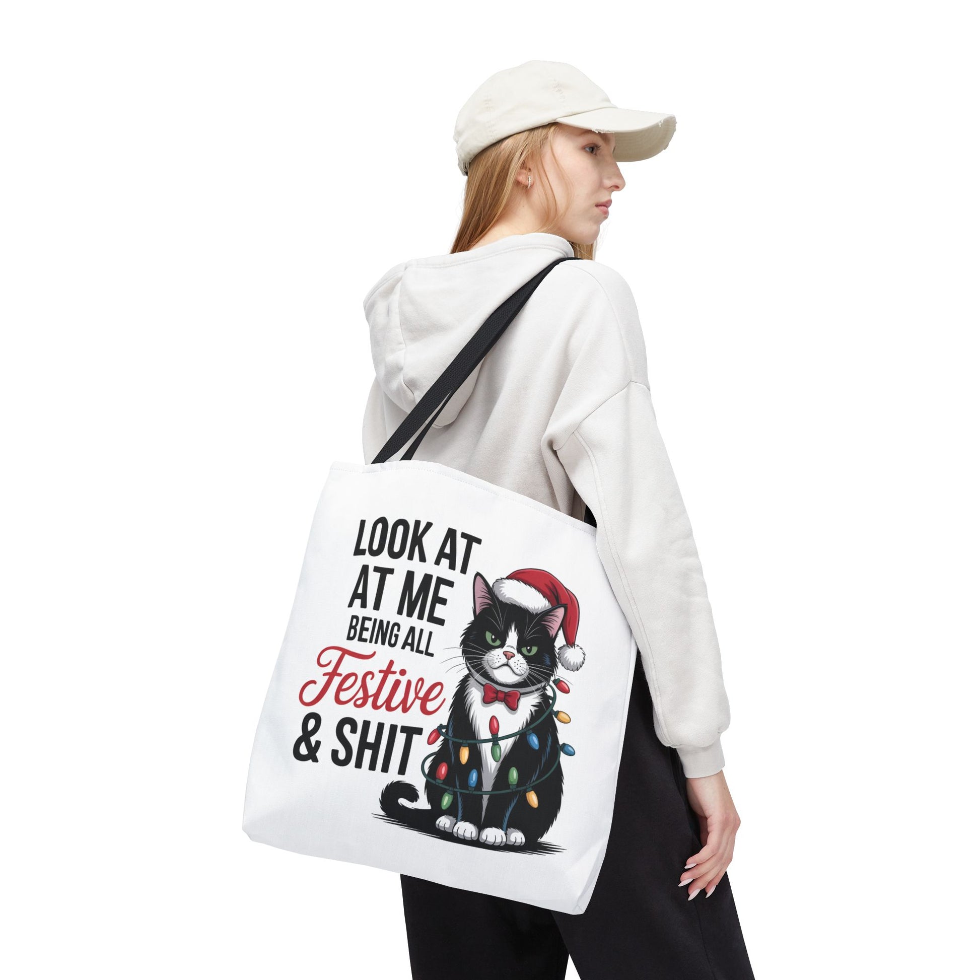 Funny Festive Cat Tote Bag