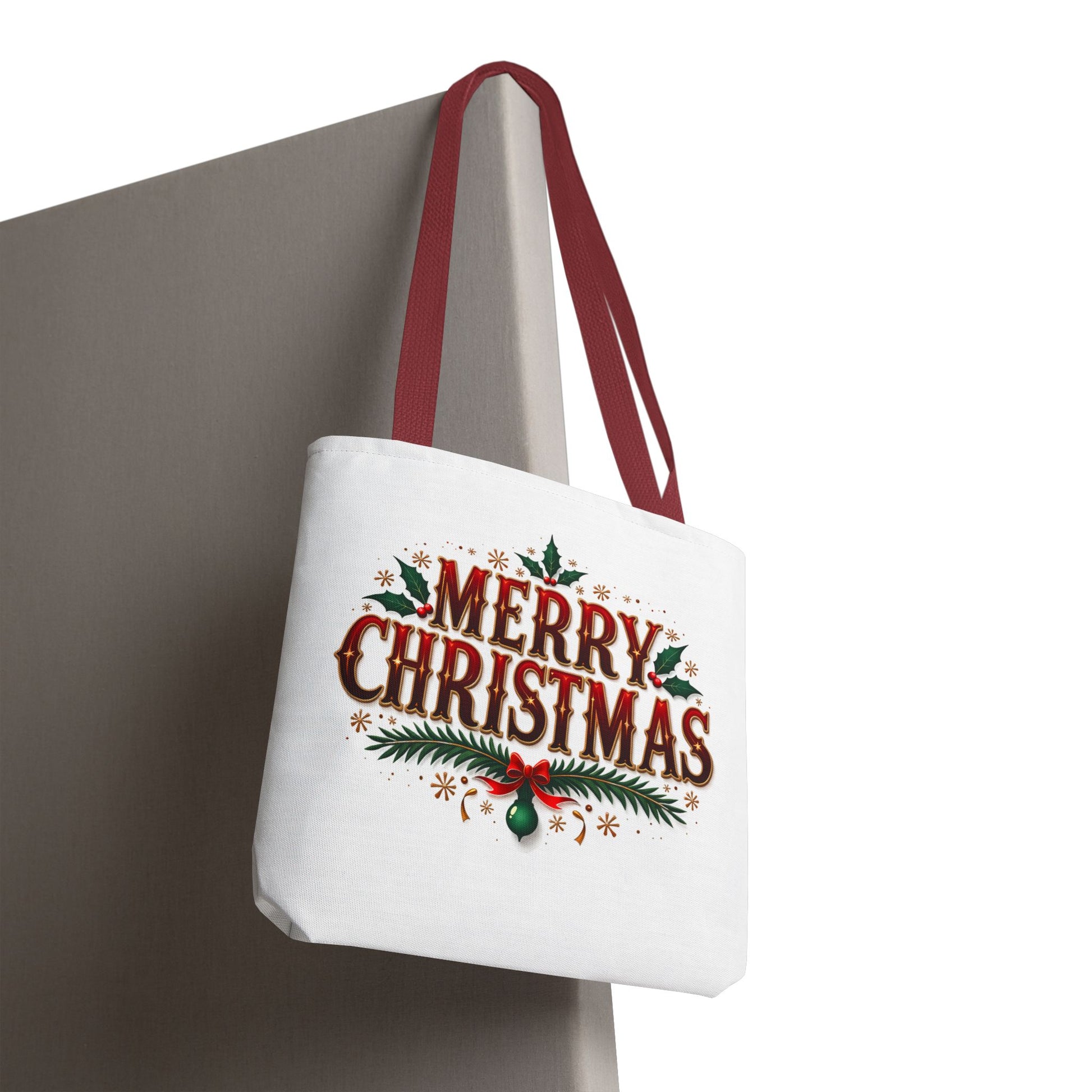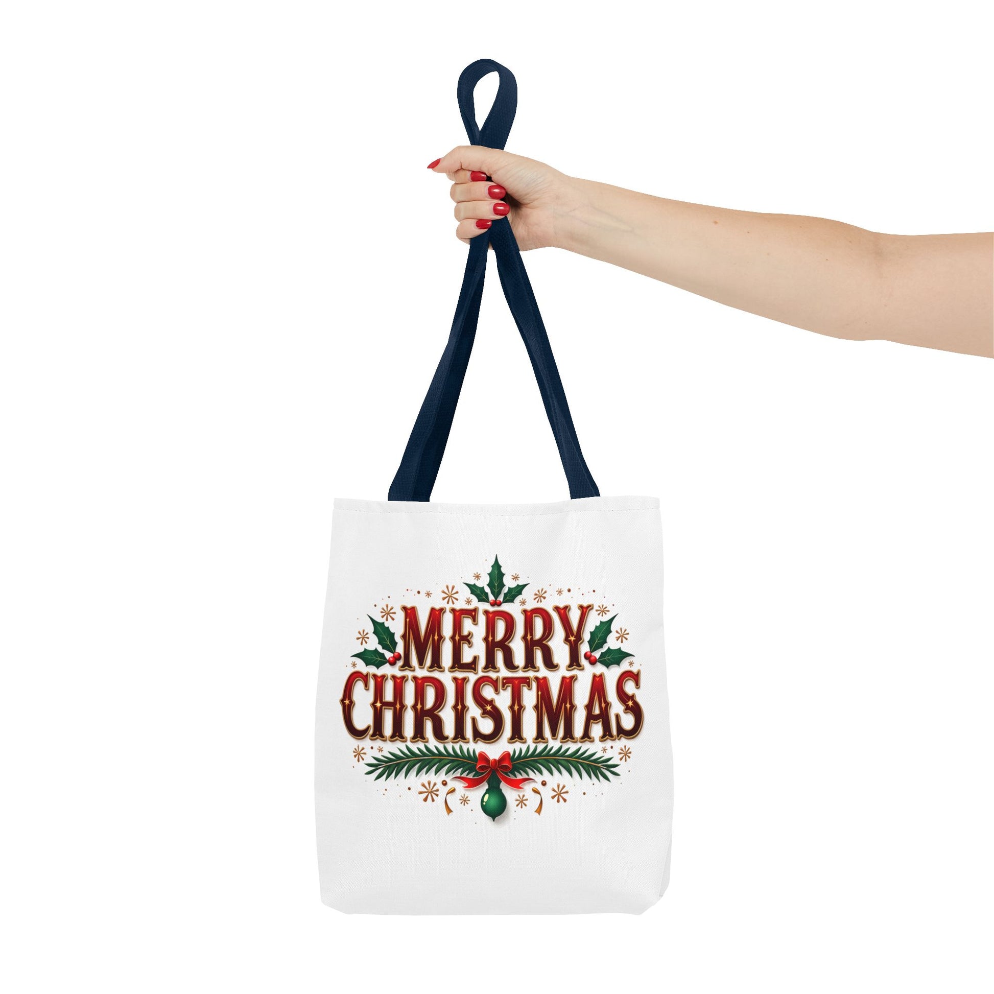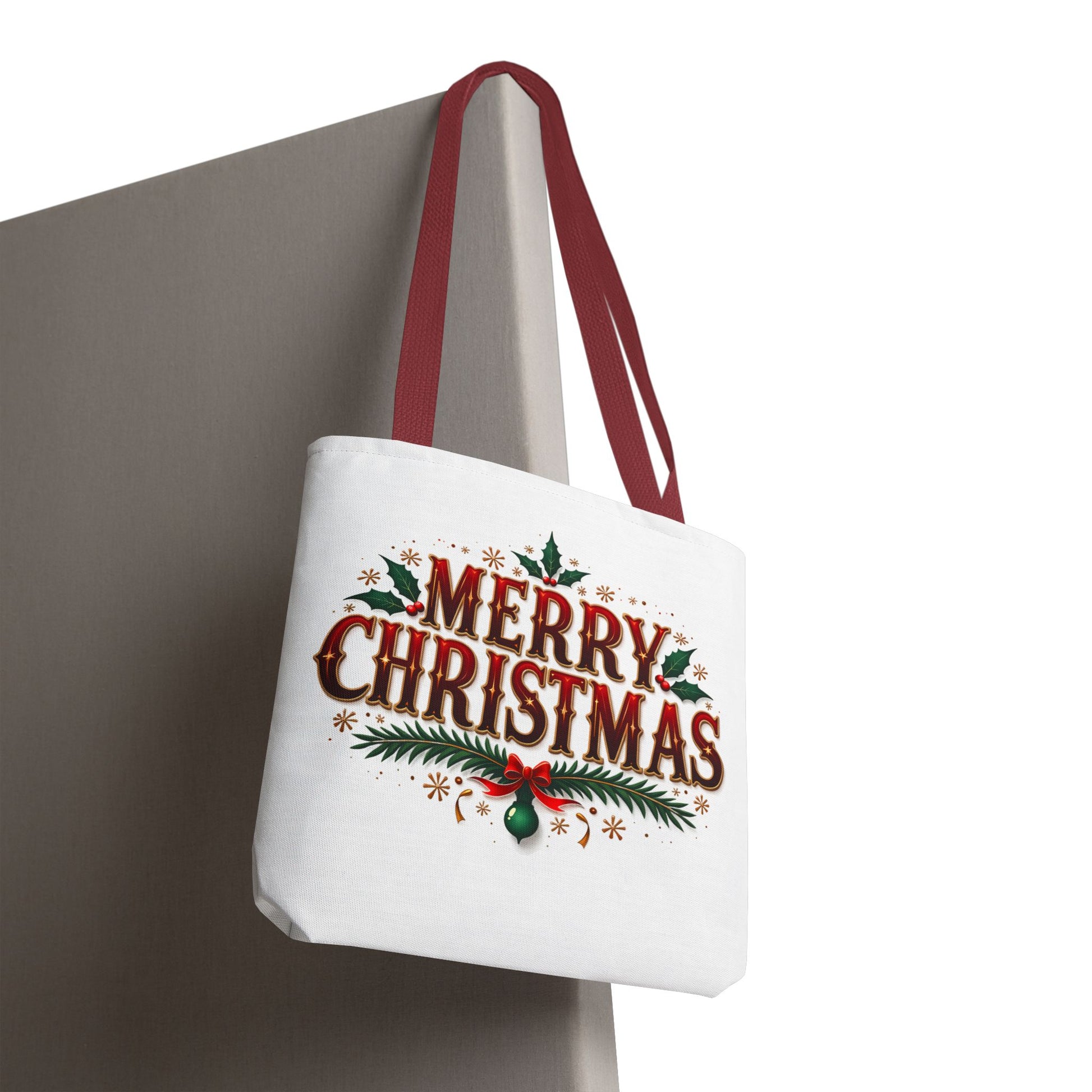 This vibrant tote bag is perfect for adding a touch of cheer to your holiday shopping trips. Made with a strong and durable polyester body, it features a festive 'Merry Christmas' design that brings joy to any occasion. Ideal for both casual outings and festive gatherings, it’s not just a tote, it’s a statement piece. Whether you’re heading to a holiday party, a gift exchange, or simply out for errands, this bag fits comfortably while showcasing your holiday spirit. Perfect for friends, family, or anyone who loves to spread seasonal cheer! It's a wonderful choice for Christmas, holiday markets, and gift-giving celebrations.