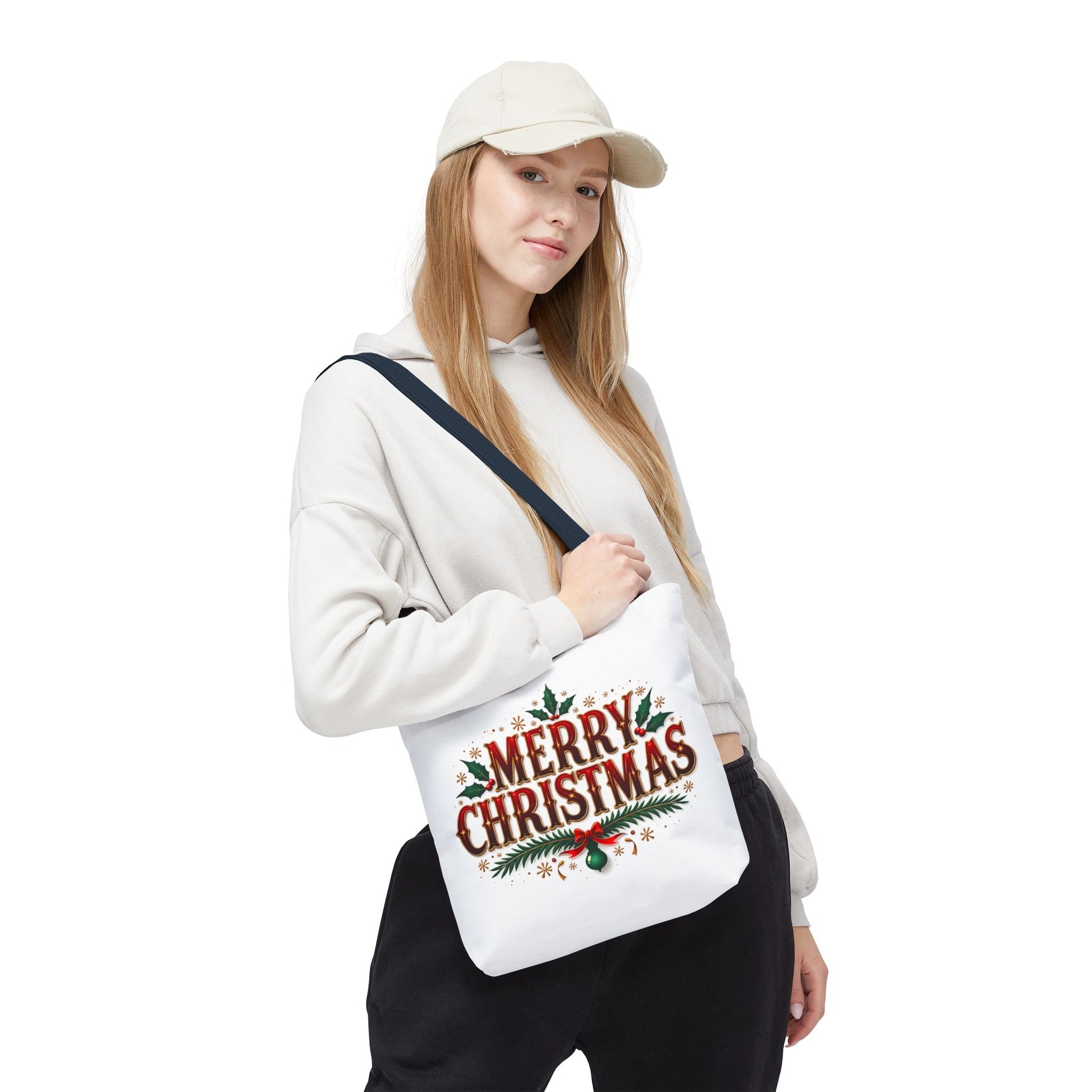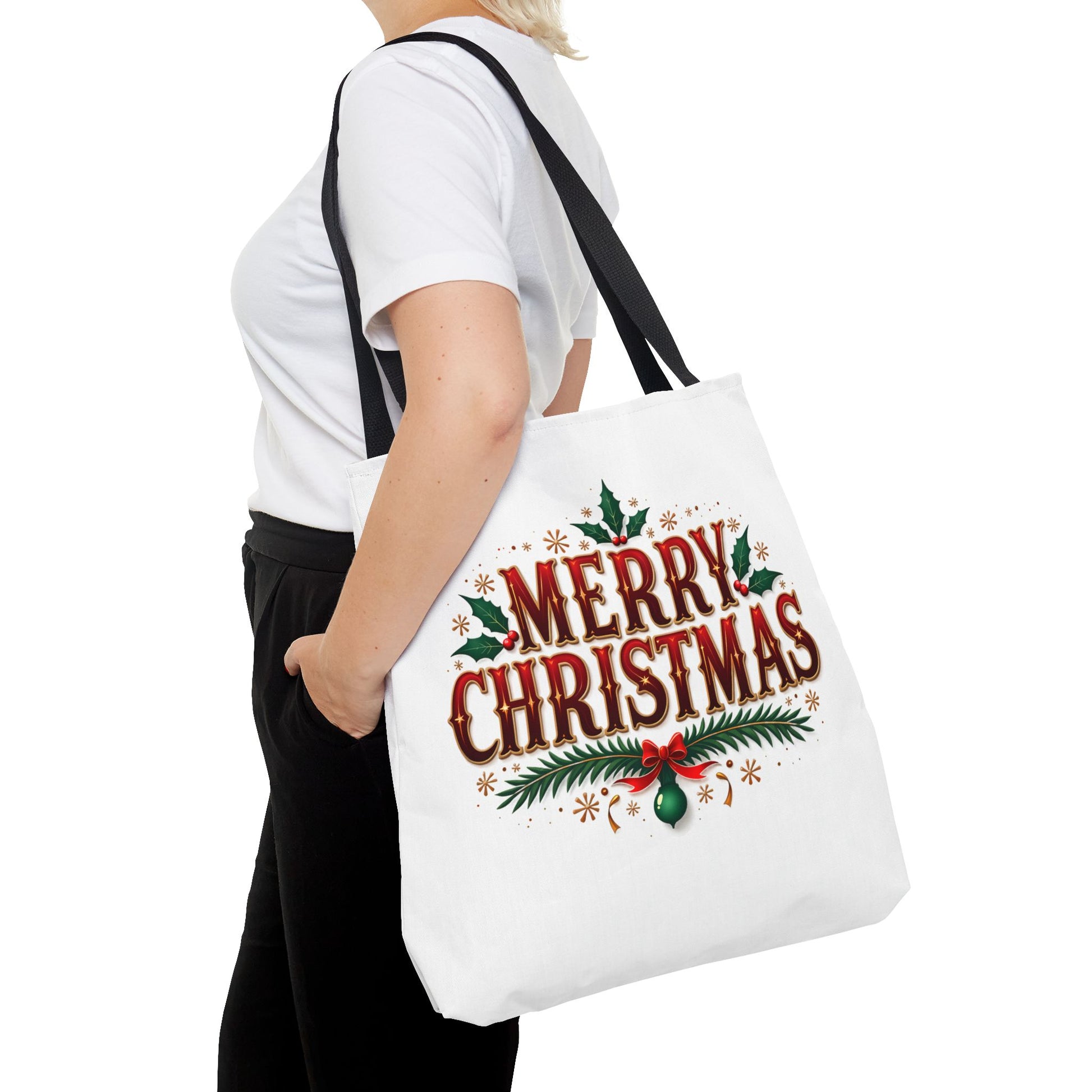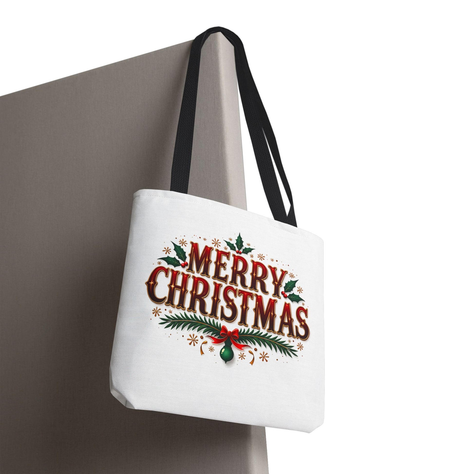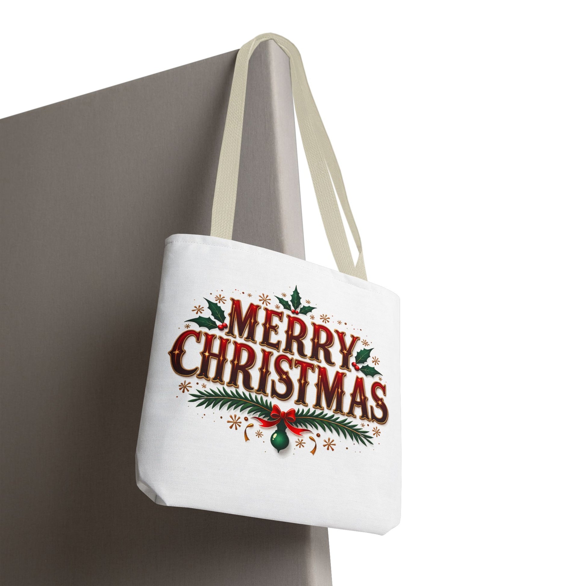 This vibrant tote bag is perfect for adding a touch of cheer to your holiday shopping trips. Made with a strong and durable polyester body, it features a festive 'Merry Christmas' design that brings joy to any occasion. Ideal for both casual outings and festive gatherings, it’s not just a tote, it’s a statement piece. Whether you’re heading to a holiday party, a gift exchange, or simply out for errands, this bag fits comfortably while showcasing your holiday spirit. Perfect for friends, family, or anyone who loves to spread seasonal cheer! It's a wonderful choice for Christmas, holiday markets, and gift-giving celebrations.
