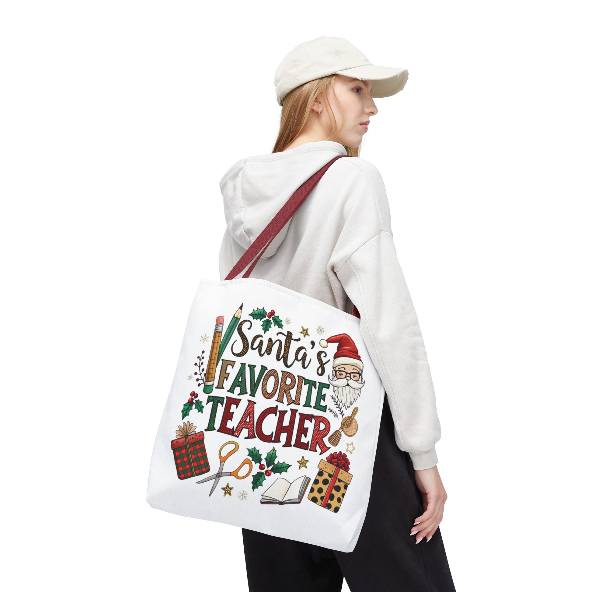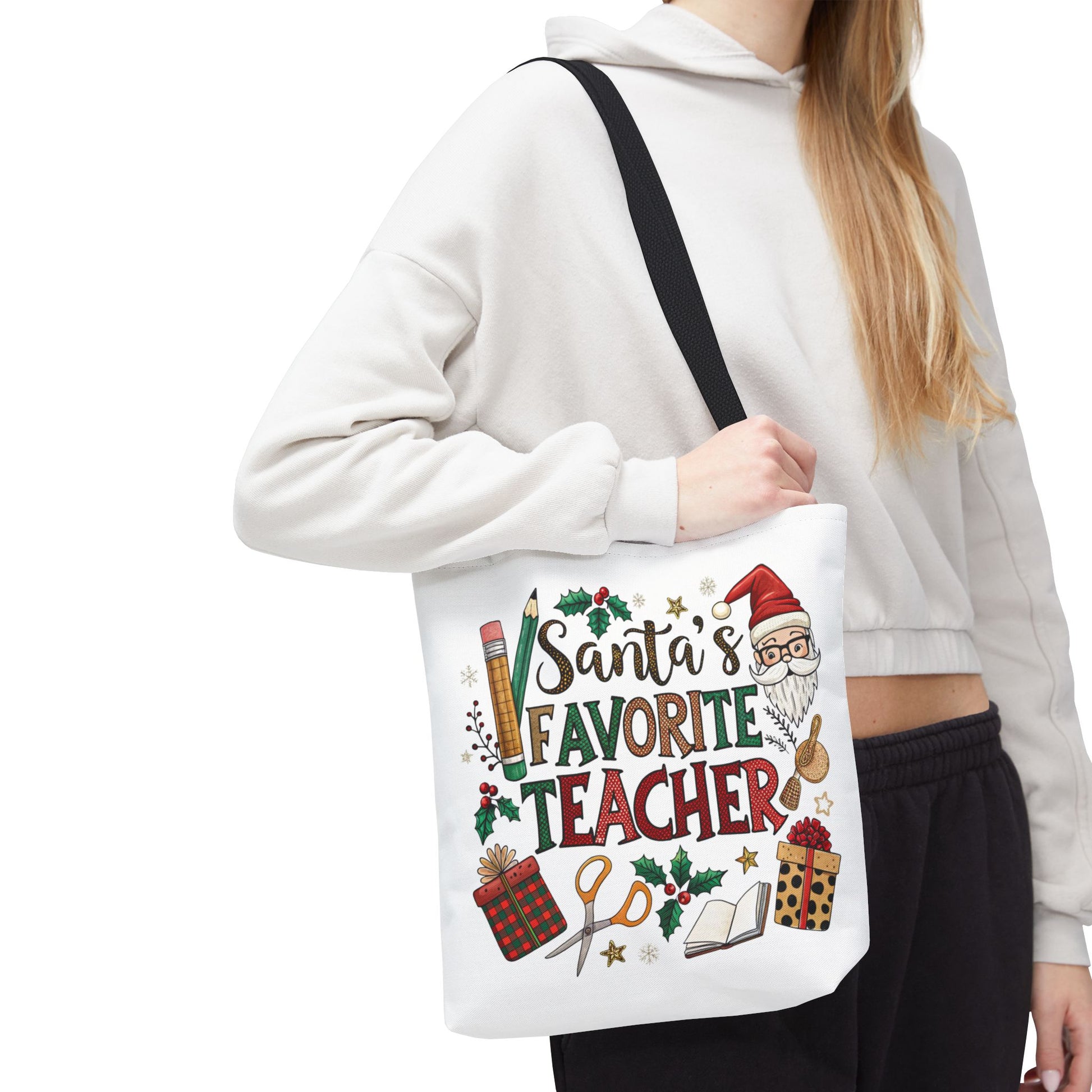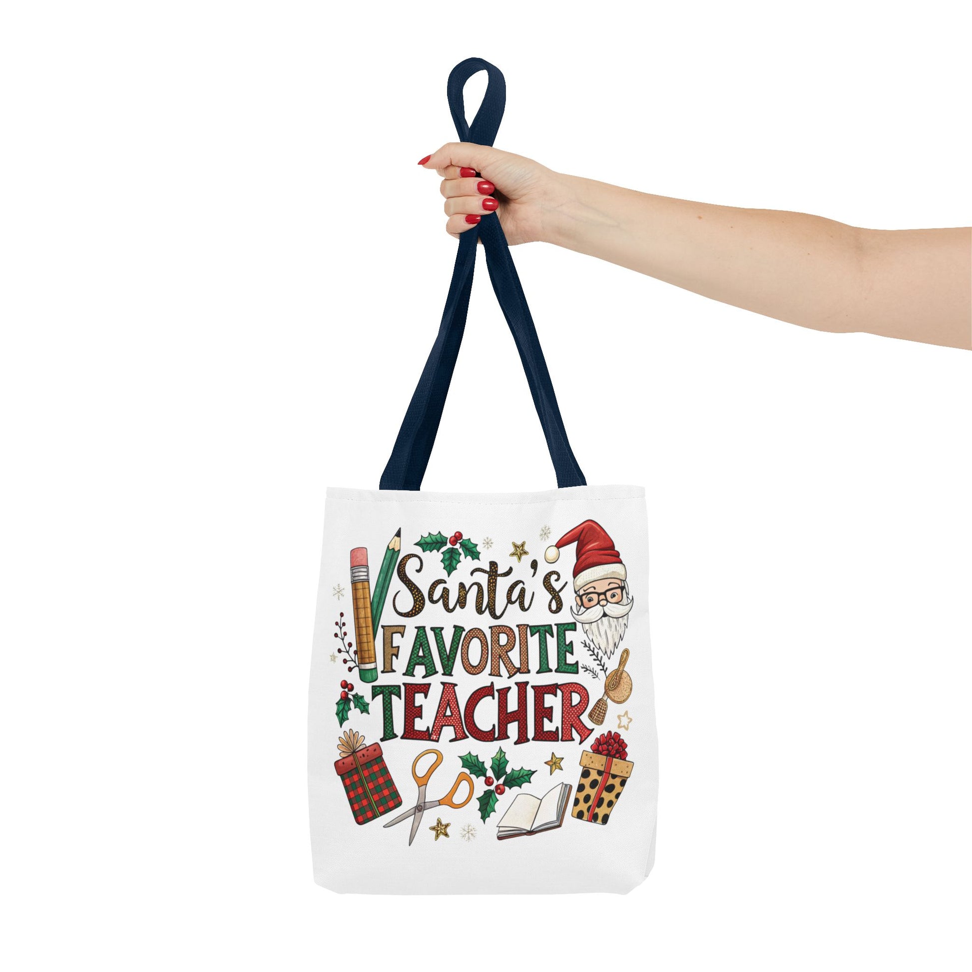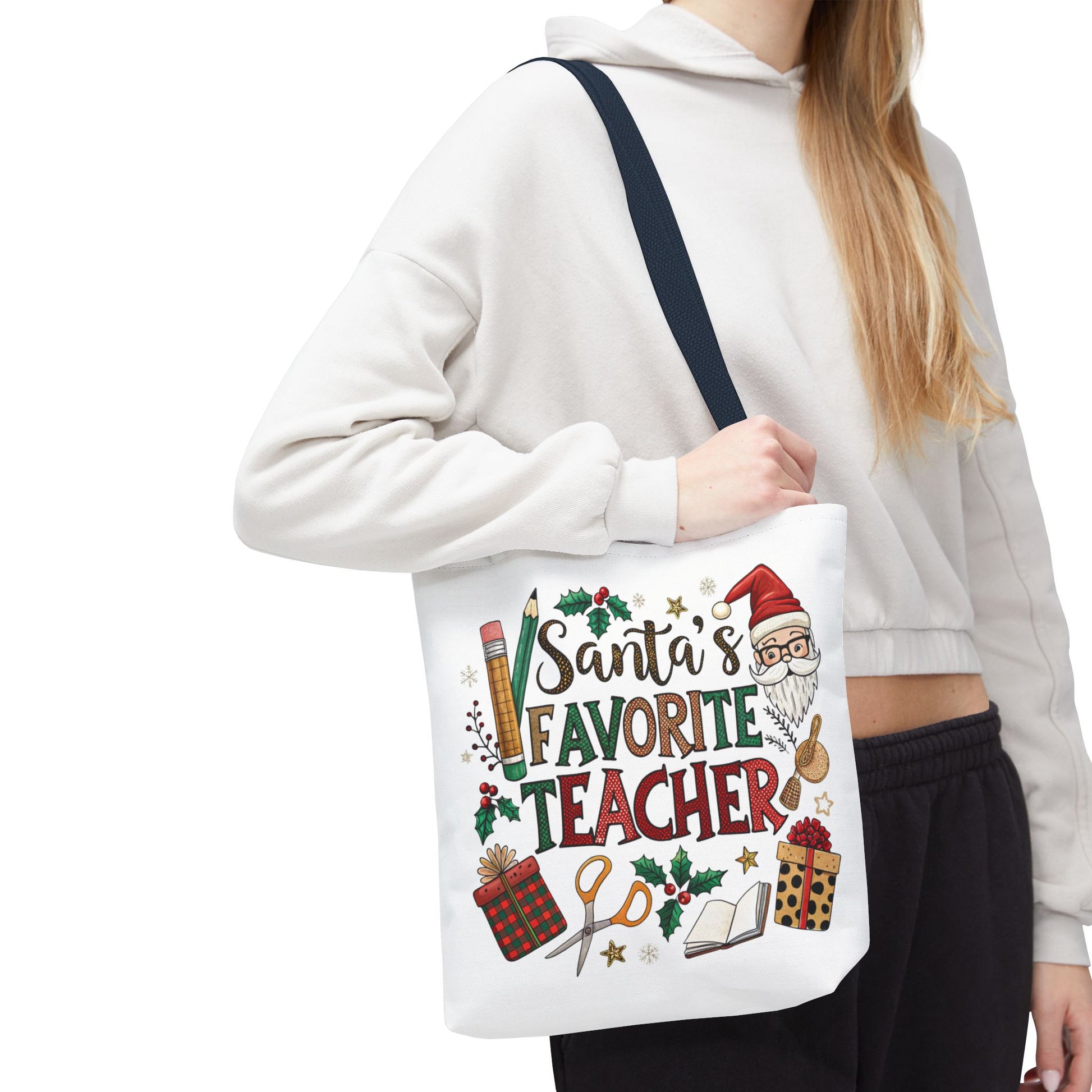 Santa's Favorite Teacher Tote Bag, Christmas Gift, Teacher Appreciation
