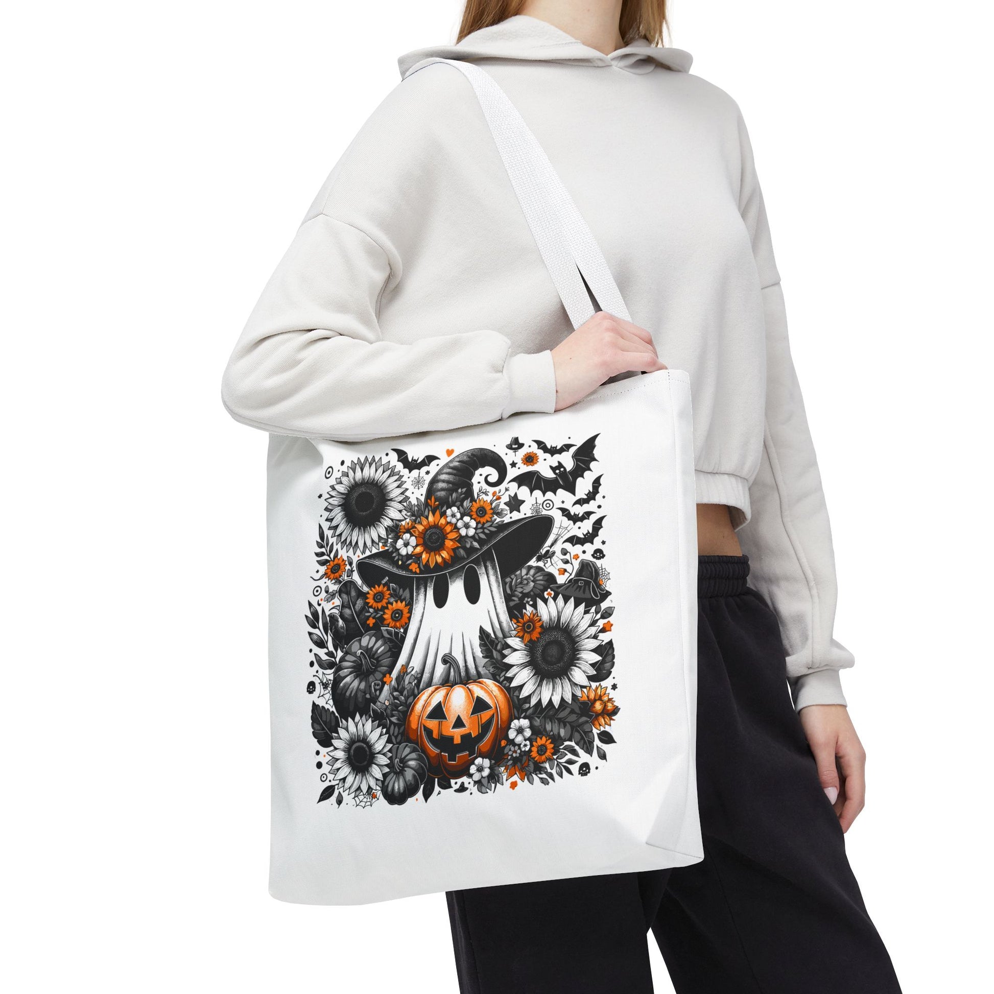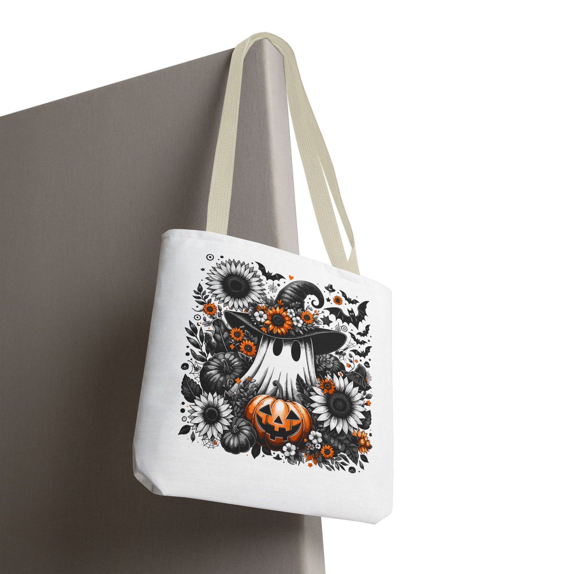 Whimsical Halloween Tote Bag, Pumpkin Ghost Design,